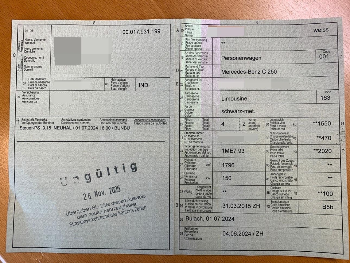 Fahrzeugausweis Vorhanden