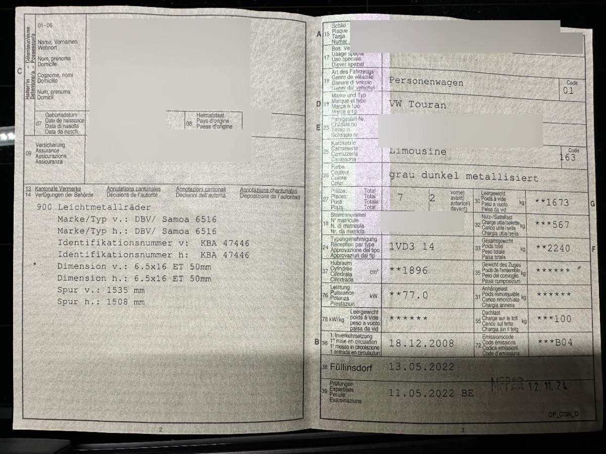 Airbag: Window-Kopfairbags, Metallapplikationen, Antriebsschlupfregelung (ASR), 3 Sitzplätze hinten, Reifenreparatur-Set mit Kompressor, Radio/CD RCD 310 mit MP3, Sequentielles 7-Gang-Getriebe DSG mit Automatikfunktion, Heckscheiben-Wisch-/Waschanlage mit, Steckdose, Gurtstraffer vorne, Leseleuchten vorne, Klimaanlage halbautomatisch mit Aus- strömer vorn, 3 Kopfstützen hinten, Räder: Stahlräder 6,5x16J, Höhenverstellbare Gurten vorne + hinten, Seitenairbag für Fahrer und Beifahrer, Radzierblenden, Türgriffe aussen in Wagenfarbe, Airbag: Airbag Beifahrer deaktivierbar, Aussenspiegel rechts und links beheizt und elektrisch verstellbar, asphärisch gewölbtes Spiegelglas, Innenlicht-Abschaltverzögerung, Dachreling schwarz, Media: Multifunktionsanzeige, Klapptische an den Rückenlehnen der Vordersitze, Lichtwarnsummer, Mittlere Sitze abklapp- und demontierbar, 2. Schlüssel mit Funkfernbedienung, Bremsassistent (BAS), Digital Uhr, Airbag: Airbag Fahrer und Beifahrer, Antiblockiersystem (ABS), Licht: Drittes Bremslicht, Tankdeckel-Entriegelung von innen, Partikelfilter und Oxydationskatalysator, Stossstangen und Aussenspiegel in Wagenfarbe, Wassertemperaturanzeige, Beleuchtetes und abschliessbares Handschuhfach, Ellipsoid Scheinwerfer, Drehzahlmesser, Steckdose im Kofferraum, Licht: Nebelschlussleuchte, Beide Make up-Spiegel beleuchtet, Gurtkontrolle, Elektrische Fensterheber vorne + hinten, Leseleuchten hinten, Wegfahrsperre elektronisch, Getönte Scheiben, Leuchtweitenregulierung von innen, Aktive Kopfstützen, Laderaumabdeckung, Ablagefach im Kofferraum, Zentralverriegelung mit Fernbedienung, Sitze: Kreuzstützen für Vordersitze verstellbar, Sitze: Vordersitze mit höheneinstellung, Wartungsintervall-Anzeige, ISOFIX Kindersitzvorrichtung, Lenkrad: Lenkrad längs- und höhenverstellbar, Polster: Stoff-Ausstattung, Tempomat, Scheibenwischer vorne mit Intervall, Kartentaschen an den Rückenlehnen, Aktivkohlefilter (Geruchsfilter), Befestigungsösen im Laderaum, Servolenkung geschwindigkeitsabhängig, Ablagefach unter dem Fahrersitz, Elektronische Differentialsperre (EDS), Elektronisches Stabilitäts-Programm ESP, Automatik-Sicherheitsgurte für alle Plätze im Fahrgastraum, Schutzleisten in Wagenfarbe, Ablagefach im Dachbereich, Tageskilometerzähler, Kühlergrill verchromt, Sitze: Beifahrersitz-Rückenlehne umklappbar, Armlehne vorne mit Ablagefach, Radiovorbereitung, Scheibenantenne, Ent- störung und 8 LS, Cupholder vorne und hinten