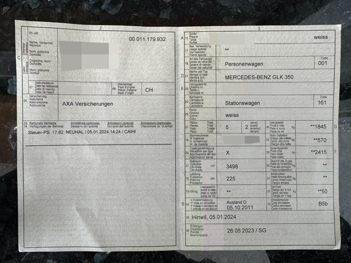 Elektrische Fensterheber vorne und hinten mit Komfortbetätigung und Einklemmschutz, Digital Uhr, Handschuhfach beleuchtet, klimatisiert und abschliessbar, Leseleuchten vorne, Assist: Elektronisches Traktions-System für Allrad (4ETS), Durchladeöffnung im Kofferraum, Bremsassistent (BAS), Verbandskasten, Polster:Stoff-Ausstattung, Allradantrieb permanent, Reifendruckverlust-Warnsystem, Licht:Halogenscheinwerfer, Kraftstofftank 66 Liter, Sitze: Armlehne vorne mit Ablagefach, Leichtmetallräder im 7-Speichen-Design 17J, Steckdose im Kofferraum, 7-Stufen-Automat 7G-TRONIC, Gepäcknetz im Laderaum seitlich, Sitze:Mittelarmlehne hinten, Audio 20 Radio CD/MP3 mit Farbdisplay, Bluetooth-Schnittstelle mit Freisprech- funktion, Aux-in-Anschluss und Telefon- tastatur, Höhenverstellbare Gurten vorne + hinten, Antiblockiersystem (ABS), Aussentemperaturanzeige, Kofferraumfernentriegelung, Steckdose, Pollenfilter (Staubfilter), Leuchtweitenregulierung von innen, Airbag: Airbag Fahrer und Beifahrer, Bremsbelagverschleiss, Katalysator geregelt, Licht:Adaptives Bremslicht, Gurtkontrolle, Reiserechner, Parameterlenkung, Licht: Nebelschlussleuchte, Crashaktive Notbeleuchtung, NECK-PRO Kopfstützen vorne, Airbag: Seiten- und Beckenairbag (Pelvisbag) für Fahrer und Beifahrer, Wartungsintervall-Anzeige, Airbag: Knie-Airbag für Fahrer, Airbag: Window-Kopfairbags für Fahrer, Beifahrer und Fondraumpassagiere, Sitze: ISOFIX Kindersitzvorrichtung, Vordersitze teilelektrisch (Höhen-, und Lehnenverstellung), Lenkrad: Multifunktionslenkrad, ADAPTIVE BRAKE mit Berganfahrhilfe, Licht:Nebelscheinwerfer, Wassertemperaturanzeige, Getönte Scheiben, Heckscheibenheizung, Cupholder vorne, Tageskilometerzähler, Drehzahlmesser, Licht: Fahrlichtassistent (automatisches Fahrlicht), Multifunktionsanzeige, Sitze: Rücksitzlehne geteilt abklappbar, Steckdose 2.Sitzreihe, Elektronisches Stabilitäts-Programm (ESP), Lenkrad längs- und höhenverstellbar, Seitenaufprall-Schutzsystem, Türgriffe aussen in Wagenfarbe, Radiovorbereitung, Antenne, Entstörung und 6 LS, Gurtstatusanzeige für Fondsitze, Blinker in Aussenspiegel, Wegfahrsperre elektronisch, Antriebsschlupfregelung (ASR), Beide Make up-Spiegel beleuchtet, Licht: Drittes Bremslicht, Applikationen Chrom, Aussenspiegel rechts und links beheizbar und elektrisch verstellbar, Kreuzstütze für Fahrersitz verstellbar, Scheibenwischer vorne mit Intervall, Assist: Tempomat mit variabler Geschwindigkeitsbegrenzung SPEEDTRONIC, Räder:Reifenreparatur-Set mit Kompressor, Einstiegsschienen vorne und hinten mit Logo, Kartentaschen an den Rückenlehnen, Mittelkonsole mit Ablagefach, Sitze:Kopfstützen hinten höhenverstellbar, AGILITY CONTROL-Lenkung mit Sicherheitslenksäule, Sitzbelegungserkennung für Beifahrersitz, Lackierung: Uni-Lackierung, Heckscheiben-Wisch-/Waschanlage mit, Fahrwerk:AGILITY CONTROL-Fahrwerk mit selektivem Dämpfungssystem, ECO Start-Stopp-Funktion, Gurtstraffer vorne und hinten, Lichtwarnsummer, Klima: Klimatisierungsautomatik THERMATIC mit 2-Klimazonen, Sitze: 3-Punkt-Sicherheitsgurte auf allen Plätzen, Zentralverriegelung mit Fernbedienung