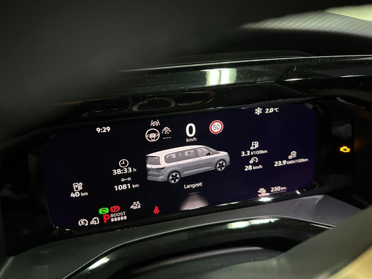Airbag: Seiten- und Kopfairbags vorn, Nichtraucherausführung, Licht: Leuchtweitenregulierung, 2 Funkklappschlüssel, Schiebefenster in der Schiebetür, links, Sitze: 2 Einzelsitze mit integriertem Gurt und Schlafauflage, Scheibenwischer 4-stufig mit Intervallschaltung und Waschdüsen, Garantie: Garantie gegen Lackmängel: 3 Jahre, Abblendbarer Innenspiegel, Sitze: Drehsitz für Beifahrer, Heckklappenschliessung ohne Entriegelungsfunktion von innen, Polster: Bi-Color Sitzbezüge in Stoff, Dessin „Bright Dots”, Licht: LED-Rückleuchten, rot, Fahrwerk: Standardfahrwerk, Türen: Schiebetüre rechts, Umfeldbeleuchtung im Türbereich, Assist: Ablenkungs- und Müdigkeitserkennung, Media: Mobiltelefon-Schnittstelle, Leiste zwischen den Scheinwerfern Schwarz glänzend lackiert, Media: DAB+ (Digital Audio Broadcasting), Assist: Speedlimiter, mit Intelligent Speed Assist, Ohne Multifunktions-Mitteltisch, Getriebe: 7-Gang-Getriebe Automatik, Sonnenblenden mit Spiegel, beleuchtet, Tickethalter auf der Fahrerseite mit Airbaglabel auf Sonnenblende und B-Säule, Wärmeschutzverglasung im Fahrerhaus, Zulassung für maximal 4 Sitzplätze, Wegfahrsperre, elektronisch, Media: App-Connect inklusive App-Connect, Wireless für Apple CarPlay und Android Auto, Assist: Kreuzungsassistent, Sitze: Armlehnen für Drehsitze Fahrer- und Beifahrer beidseitig, mit elektrischer Lendenwirbelstütze, Servolenkung, Räder: 4 Leichtmetallräder „Dundrod” 6,5 J x 17, in Silber, Garantie: Garantie gegen Karosserie-Durchrostung: 12 Jahre, Warnton und -leuchte für nicht angelegte Gurte vorn und hinten, Schubladen unter den äusseren Sitzen im Fahrerraum und Fahrgastraum und 2 Abfallbehälter, Bordwerkzeug und Tire Mobility Set (in den Staufächern im Gepäckraum), Kunststoffboden im Fahrgast-/Laderaum, Licht: LED-Hauptscheinwerfer mit LED-Tagfahrlicht, Türen: Schiebetüre links, Traktionskontrolle TCS, Assist: Notbremsassistent Front Assist mit Fussgänger- und Radfahrererkennung, Zentralverriegelung mit schlüssellosem Startsystem „Keyless Start” ohne Safe-Sicherung, Media: 8 Lautsprecher, Assist: Ausweichunterstützung und Abbiegeassistent, Dekor: Dekor-Einlagen „Scale Light Grey”, Licht: Tagesfahrlichtschaltung, Notrufsystem eCall, Antiblockiersystem (ABS), Heckklappe, Lenkrad: Leder-Multifunktionslenkrad mit Bedienung für Radio und Telefon und Schaltwippen, Klima: Klimaanlage mit manueller Regelung mit Zusatzheizung für den Fahrgastraum, Schiebefenster in der Schiebetür, rechts, Assist: Automatische Distanzregelung mit Stop & go, Markisenschiene beidseitig in schwarz, Assist: Spurhalteassistent „Lane Assist”, Media: Radio”Ready 2 Discover” mit 10″ Touch-Farbdisplay, Handschuhfach ohne Beleuchtung, Aufstelldach manuell bedienbar, mit 3 Fenstern und einer Frontöffnung, Faltenbalg in Basalt Grey, Räder: Radmittenabdeckungen für Leichtmetallräder, Garantie: Garantie 2+1 Jahre oder 100’000 km, Elektronisches Stabilitäts-Programm (ESP), Aussenspiegelgehäuse in schwarz hochglanz, Garantie: VW Garantie: 2 Jahre ohne Kilometerbegrenzung (ab 1. Inv.), Räder: Reifendruck-Kontrollanzeige, Media: Sprachsteuerung plus In Car Communication (ICC), Sitze: Drehsitz für Fahrer, 17″ Scheibenbremsen vorn und 16″ Scheibenbremsen hinten, Airbag: Airbag für Fahrer- und Beifahrer, Lackierung: Uni-Lackierung, Assist: Ultraschall-Einparkhilfe vorn und hinten, Assist: Spurwechselassistent „Side Assist” inkl. „Blind Spot Detection”, Ausparkassistent und Ausstiegswarner, Verdunkelungssystem: Verdunkelungsrollos und Gardinen, Räder: Reifen 235/55 R 17 103H, rollwiderstandsoptimiert, Assist: Verkehrszeichenerkennung, Media: 2 USB-C-Schnittstellen vorn, 4 USB-C-Ladebuchsen im Fahrgastraum, Dunkel eingefärbte Fenster im Fahrgastraum, 4MOTION, Vorbereitung Alcohol Interlock, Elektrische Fensterheber vorne, Media: Digital Cockpit