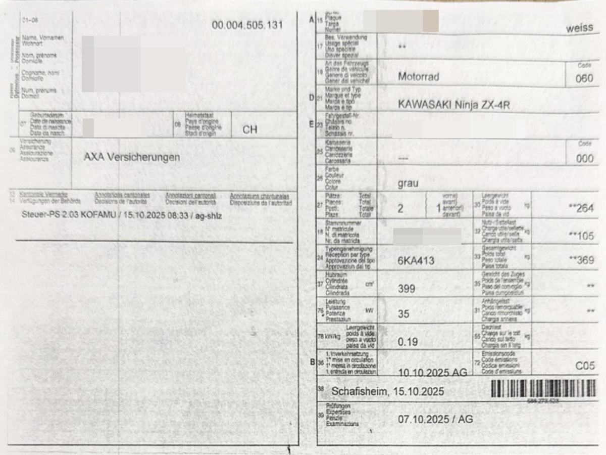 Die (vom Fahrzeugexperten) ermittelten Reparaturkosten beziehen sich auf das versicherte Ereignis. Allfällige zusätzliche, nicht versicherte Schäden/Vorschäden, sind in den Reparaturkosten nicht enthalten. Die deklarierten Ausstattungsmerkmale können von der effektiven Ausstattung abweichen.