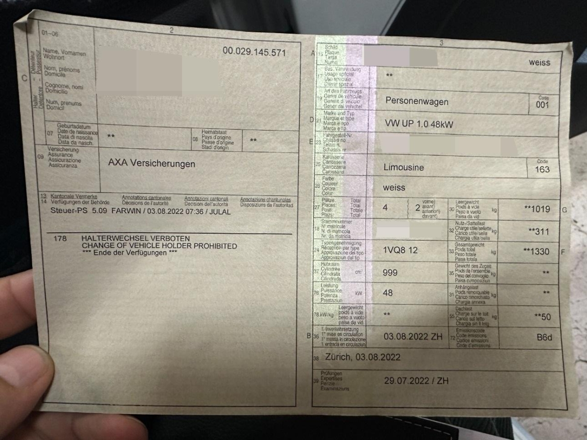 Komfortblinker (1x antippen = 3x blinken), Gurtkontrolle, E-Kontakt vorn und hinten, optisch und akustisch – Sitzbelegerkennung, Bordwerkzeug und Wagenheber, Räder: Stahlräder mit Radvollblende und VW-Logo in Aluminium – 4 Stahlräder 5 J x 14 – Reifen 165/70 R14 – Rollwiderstandsoptimierte Reifen 175/65 R14 für BlueMotion Technology, Storage pack mit Gepäcknetz und Taschenhalter, Warnblinkautomatik bei Vollbremsung, Media: Smartphone Integration maps + more dock – 3-Arm-Halter für Smartphones mit Displaygrösse bis 5,5 Zoll – VW-App für IOS und Android Systeme – Über VW-App „maps + more” direkter Zugriff auf Daten für Navigation, Telefon, Multifunktionsanzeige, Mediadateien und Radio Notwendige Schritte zur Nutzung der Smartphone Integration: 1. Installation der App „maps + more” auf dem Smartphone; 2. Smartphone per Bluetooth mit dem Fahrzeug koppeln; 3. App „maps + more” starten; 4. Code in der App und dem Infotainment-System bestätigen;, Media: Multimediabuchse USB-Schnittstelle, Lackierung: Uni-Lackierung ( white uni ), Polster: Sitzbezüge in Stoff, Dessin „fusion”, Zentralverriegelung mit Funkfernbedienung (ohne Safe-Lock) mit zwei Funkklappschlüssel, Licht: Halogen-Hauptscheinwerfer und Blinkleuchten unter gemeinsamer Klarglasabdeckung, mit LED-Tagfahrlicht, Media: Sound „plus” mit 6 Lautsprechern zusätzlich zu Standardlautsprechern 2 x 2 Wege Lautsprecher, Lackierung: Uni-Lackierung (teal blue uni), Drehzahlmesser, Multifunktionsanzeige Plus, Licht: Fahrlichtschaltung automatisch, mit Tagfahrlicht, Leaving home-Funktion und manueller Coming home-Funktion, Variabler Ladeboden (nicht erhältlich für eco up!), Licht: Drittes Bremslicht, Kühlergrill schwarz lackiert mit Chromleiste auf unterer Lamelle, Lenkrad: Multifunktionslenkrad in Leder, Licht: Nebelschlussleuchte, Mittelkonsole inkl. 1 Becherhalter vorne und 1 Becherhalter hinten, Airbag: Kopf- und Seitenairbag vorne, kombiniert, Licht: Innenleuchte vorne mit Abschaltverzögerung und Kontaktschaltern in allen Türen, Aussenspiegel von innen einstellbar, Sitze: Sitzplätze 2 vorne/ 2 hinten, Gepäckraumboden in 2 Höhen einstell- und herausnehmbar, Scheibenbremsen vorne, innenbelüftet, Scheibenwischer vorne und Heckscheibenwischer mit Intervallschaltung, Airbag: Kopfairbagsystem für Front- und Fondpassagiere inkl. Seitenairbags vorn, Sitze: Rücksitzlehne asymetrisch geteilt umklappbar, Fensterheber vorne elektrisch, Dachhimmel in grey, Garantie: 2 JAHRE NEUWAGEN-GARANTIE OHNE KILOMETER-BEGRENZUNG, Aussenspiegelgehäuse und Türgriffe in Wagenfarbe, Kombi-Instrument mit elektronischem Tachometer, Kilometer- und Tageskilometerzähler, Räder: Reifenkontrollanzeige, Media: Digitaler Radioempfang DAB+, Schalthebelknauf und Handbremshebelgriff in Leder, Assist: Multifunktionskamera, Warnton und -leuchte für nicht angelegten Fahrergurt, Stossfänger in Wagenfarbe, Gepäckraumbeleuchtung, Wärmeschutzverglasung grün, Sicherheitsgurte hinten außen mit ECE-Label, 2 Kopfstützen hinten, absenkbar, Nichtraucherausführung, 12-V-Steckdose vorne, Lenkrad: Lenksäule mit Höheneinstellung, 4 Türen, Seitenscheiben hinten ausstellbar, Start-Stopp-System, Media: Radiosystem composition phone – 5.0″-Farbdisplay – Mobiltelefonvorbereitung (Bluetooth) – Multimediabuchse USB-Schnittstelle, AUX-IN und SD-Kartenschacht – Digitaler Radioempfang DAB+ und FM-Empfang – 2 x 20 Watt, Kennzeichenbeleuchtung in LED-Technik, Blinkleuchten seitlich in die Aussenspiegel integriert, Sitze: Rücksitzbank ungeteilt, Lehne asymetrisch geteilt umklappbar, 2-sitzig, Räder: Tire Mobility Set; 12-Volt-Kompressor und Reifendichtmittel, „Easy Entry” mit Memoryfunktion, Ablagefächer in die Türen (vorne mit Halterung für 1,0-l-Flaschen), ISOFIX-Halteösen (Vorrichtung zur Befestigung von 2 Kindersitzen auf der Rücksitzbank), Elektronisches Stabilisierungsprogramm (ESP) inkl. ABS mit Bremsassistent – inkl. ASR, EBV, MSRund Berganfahrassistent, Servolenkung elektromechanisch, Assist: Lane Assist, Gepäckraum-Bodenbelag in Nadelvlies, Getriebe: 5-Gang-Getriebe, Bremsenergierückgewinnung, Heckscheibenheizung, Sonnenblende für Fahrer und Beifahrer, auf Fahrerseite mit Tickethalter, auf Beifahrerseite mit Make-Up-Spiegel, Handschuhfach mit Klappe, Dashpad „black cube”, Hochton-Signalhorn, Assist: Spurhalteassistent „Lane Assist” der „Lane Assist” arbeitet mit einem korrigierenden Lenkeingriff dem Verlassen der Fahrspur entgegen, Türinnenbetätigung in Chrom, Karosserie teilverzinkt, Gepäckraumabdeckung mit Schnüren, Einfassung der Ausströmer links und rechts in Chrom, Katalysator geregelt, Sitze: Kopfstützen vorne im Sitz integriert, Regensensor, Garantie: VW Garantie: 12 Jahre Karosserie-Garantie gegen Durchrostung, Sitze: Vordersitze mit Höheneinstellung, Klima: Klimaanlage manuell, Instrumentenbeleuchtung weiss, rotes Nachtdesign für Schalter, Textilfussmatten vorne und hinten, Wegfahrsperre elektronisch, Airbag Fahrerseite, Staub- und Pollenfilter, Digitaler Radioempfang DAB+, Assist: Verkehrszeichenerkennung über Navigationssystem maps&more, Sound „plus” mit 6 Lautsprecher