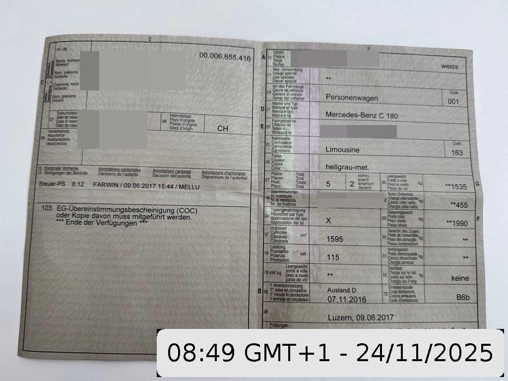 Lenkrad:Multifunktionslenkrad in Nappaleder, Licht: LED-Tagfahrlicht, Beleuchtetes und abschliessbares Handschuhfach, ESP Kurvendynamik-Assistent, Beide Make up-Spiegel beleuchtet, Media:Bluetooth-Schnittstelle für Telefonfreisprechfunktion, Drittes Bremslicht LED, Sitze: ISOFIX Kindersitzvorrichtung, Innenlicht-Abschaltverzögerung, Assist:COLLISION PREVENTION ASSIST (Kollisionswarnung), Wärmeschutzverglasung, Wegfahrsperre elektronisch, Bottleholder, Wartungsintervall-Anzeige, Klimatisierungsautomatik, Fahrwerk:Direktlenkung mit geschwindigkeits- abhängiger Lenkkraftunterstützung, Brillenfach, Airbag: Seitenairbag für Fahrer und Beifahrer, Dekor:Türmittelfelder in Mikrofaser DINAMICA, Fenstereinfassung in poliertem Aluminium, Fahrwerk:AGILITY CONTROL-Fahrwerk mit selektivem Dämpfungssystem, Elektronisches Stabilitäts-Programm (ESP), Kofferraumfernentriegelung, Kartentaschen an den Rückenlehnen, Dekor: Bordkantenzierstab in Aluminium poliert, Lackierung: Uni-Lackierung, Reifenreparatur-Set (Tire Fit), 7-Stufen-Automat 7G-TRONIC, Antiblockiersystem (ABS), Airbag: Knie-Airbag für Fahrer, Licht: Nebelschlussleuchte, Sitze:Vordersitze mit elektrischer Höhen-, Lehnen-, und Neigungseinstellung, Airbag: Airbag Fahrer und Beifahrer, Scheibenwischer vorne mit Intervall, Reiserechner, Media: Audio 20 USB mit Farbdisplay, RDS- Doppeltuner, 2 USB-Anschlüsse, zentrales Bedienelement, Bluetooth-Schnittstelle, Gepäcknetz im Laderaum seitlich, Lenkrad: Lenkrad-Wippschaltung (Paddles), Aussentemperaturanzeige, Zentralverriegelung mit Fernbedienung und automatischer Türverriegelung, Assist: ATTENTION ASSIST (Aufmerksamkeitsassistent), Steckdose 12-Volt- vorne, ECO Start-Stopp-Funktion, Assist: Tempomat mit variabler Geschwindigkeitsbegrenzung SPEEDTRONIC, Aussenspiegel rechts und links beheizbar und elektrisch verstellbar, Leichtmetallräder im Vielspeichendesign 17J, Sitze:Sitzbelegungserkennung für Beifahrersitz, Katalysator geregelt, Airbag: Window-Kopfairbags, Polster:Polsterung Ledernachbildung ARTICO / Microfaser DINAMICA, Licht:Fahrlichtautomatik, 5 Lautsprecher, Assist:Reifendruck-Kontrollanzeige, Zierelemente in Linde hellbraun, Einstiegsschienen vorne mit Logo, Assist:ADAPTIVE BRAKE mit HOLD-Funktion und Berganfahrhilfe, Elektrische Fensterheber vorne und hinten mit Komfortbetätigung und Einklemmschutz, Dekor: Instrumententafel in Ledernachbildung ARTICO, Licht:Adaptives Bremslicht, Media:Heckscheibenantenne, Blinker in Aussenspiegel, DYNAMIC SELECT Schalter, Licht: Innenraumlicht-Paket, Heckscheibe heizbar mit Zeitsteuerung, Sitze: Armlehne vorne mit Ablagefach, Licht: LED Heckleuchten