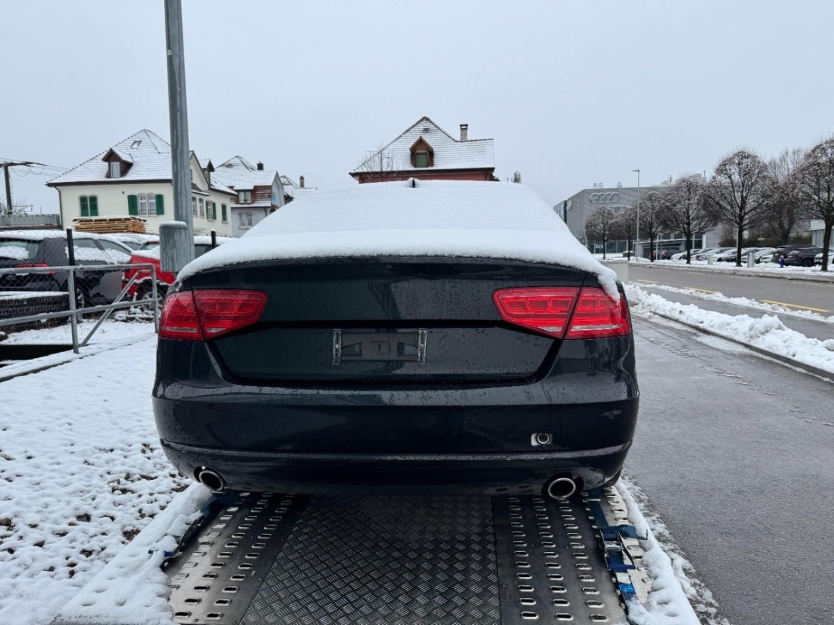 Ausstiegsleuchten in den Türen, Radiovorbereitung, Scheibenantenne, Ent- störung und 8 LS, Digital Uhr, Alu-Räder 8Jx18 7-Arm-Design, Vorbereitung für Handy mit Freisprech- anlage (Bluetooth), Sitze: Vordersitze heizbar, Licht: Tagfahrlicht, Elektrisch verstellbares Lenkrad, Bremsbelag-Verschleissanzeige, Abschliessbare Radschrauben, Garantie: 2 Jahre ohne Kilometerbegrenzung (ab 1. Inv.), Heckscheibenheizung, Aussenspiegel rechts und links beheizt, elektrisch verstell- / und einklappbar, Allradantrieb permanent, Aussentemperaturanzeige, Schutzleisten in Wagenfarbe, Media: Audi music interface, Höhenverstellbare Gurten vorne, Zentralverriegelung mit Fernbedienung, Leseleuchten hinten, Multifunktions-Lederlenkrad 4-Speichen mit Schaltwippen, Bi-Xenon-Scheinwerfer inkl. Reinigungsanlage, Aschenbecher und Zigarettenanzünder, Scheibenwaschdüsen beheizt, Teppichfussmatten vorne und hinten, Notrad, Media: MMI Navigationssystem Plus, Diebstahlwarnanlage mit Abschleppschutz, Leuchtweitenregulierung automatisch, Tageskilometerzähler, Stossstangen und Aussenspiegel in Wagenfarbe, Partikelfilter und Oxydationskatalysator, ISOFIX Kindersitzvorrichtung, Airbag: Window-Kopfairbags, Servotronic, Erweiterte Aluminium-Optik, Scheibenwischer vorne mit Intervall, Sportdifferential hinten, Leseleuchten vorne, Elektronische Parkbremse, Elektronische Differentialsperre (EDS), Assist: Bremsassistent (BAS), Getriebe: 8-Stufen-Automat sequentiell, Innenspiegel automatisch abblendbar, Radio-High, Airbag: Airbag Fahrer und Beifahrer, Servolenkung geschwindigkeitsabhängig, Elektronisches Stabilitäts-Programm (ESP), Elektrische Fensterheber vorne + hinten, Licht: Drittes Bremslicht, MMI basic, Nebelscheinwerfer, Antriebsschlupfregelung (ASR), Holzapplikationen Nussbaum, Beide Make up-Spiegel beleuchtet, Innenlicht-Abschaltverzögerung, Lichtwarnsummer, Geruchssensor, 3-Punkt-Sicherheitsgurte auf allen Plätzen, Sitze: Elektrisch einstellbare Lendenwirbelstütze für Vordersitze, Getönte Scheiben, Licht: Nebelschlussleuchte, Abblendlichtausschaltverzögerung 'Follow me home’, Räder: Reifendruck-Kontrollanzeige, Aktive Kopfstützen, Türgriffe aussen in Wagenfarbe, Adaptive air suspension: elektronisch geregelte Luftfederung, Assist: Park Distance Control vorne und hinten, 3 Kopfstützen hinten, Klima: Pollenfilter (Staubfilter), Cupholder vorne und hinten, Gurtstraffer vorne und hinten, Antiblockiersystem (ABS), Airbag: Seitenairbags vorne und hinten, Wegfahrsperre elektronisch, Audi Bluetooth Autotelefon ohne Hörer, Drehzahlmesser, Mittelarmlehne vorn in Kunstleder schwarz mit Kontrastnaht in Rot