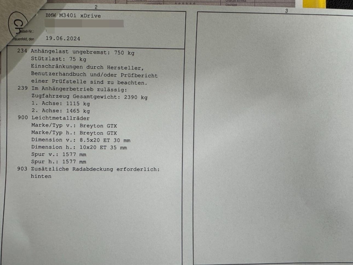 Teleservices, Ottopartikelfilter, Media: HiFi Lautsprechersystem HiFi-Lautsprechersystem, digitaler Verstärker, 205 W Verstärkerleistung. 10 Lautsprecher: – 1 Mitteltöner und 1 Hochtöner in der Instrumententafel – 2 Hochtöner in den Spiegeldreiecken – 4 Mitteltöner in den Türverkleidungen vorne und hinten – 2 Zentralbässe unter den Vordersitzen, Innenbeleuchtung, Auto Start Stop Funktion, Fahrwerk: M Sportdifferential – Verteilung des Antriebsmoments zwischen den Hinterrädern optimiert Traktion, Agilität sowie Fahrstabilität – Elektronische Regelung des Sperrgrads der Hinterachse je nach Fahrsituation und Fahrbahnbeschaffenheit zwischen 0 und 100% – Traktion: variable Zuweisung von «mehr Drehmoment» auf das Rad mit besserer Bodenhaftung ermöglicht bessere (Anfahr-)Traktion auch bei Kurvenfahrten – Agilität: Ermöglichung höheres Querbeschleunigungs- und Fahrdynamikpotenzial, Airbag: Seitenairbag für Fahrer und Beifahrer, Sitze: Sportsitze für Fahrer und Beifahrer – manuelle Einstellung für Sitzhöhe, Lehnenneigung, Sitzneigung und Sitztiefungverstellung – manuelle Einstellung für Sitzlängsrichtung und Kopfstützenhöhe, Lackierung: Uni-Lackierung, Räder: Reifen Pannen Anzeige, BMW Mobile Care – BMW Mobile Care: Pannen- und Unfallhilfe – Die BMW Pannen- und Unfallhilfe ist an 365 Tagen im Jahr rund um die Uhr im In- und Ausland für Sie da und das bis zu fünf Jahre nach der Erstzulassung Ihres Fahrzeugs., Fensterheber, elektrisch – Einklemmschutz und Komfortöffnung/-schließung, Sitze: Sitzverstellung, elektrisch mit Memory – Elektrisch verstellbar: Sitzhöhe, Lehnenneigung, Sitzposition, Sitzflächenneigung – Fahrersitz mit Sitzmemory, 2 Positionen speicherbar inklusive Spiegelposition – Aussenspiegel: Memoryfunktion, Bordsteinautomatik, Kennzeichenbeleuchtung in LED, Assist: Park Distance Control vorne und hinten, Gesetzlicher Notruf, Paket: Ablagenpaket Im Interieur: – Mittelkonsole, hinten: eine Doppel-USB-Buchse (nur Laden: Typ C/3,0 A) – Fahrer- und Beifahrersitz: Netze an Sitzlehnerückseite, jeweils in Farbe der Sitzblende Im Gepäckraum: – Netz, schwarz, mit Rahmen, links, rechts – Multifunktionshaken, Assist: Dynamische Stabilitäts Control (DSC) mit erweiterten Umfängen, M Leuchten Shadow Line – Ausführung ausgewählter Elemente der Leuchte in Dunkel, kein Einfluss auf Leuchtfarbe und -intensität., Airbag: Kopfairbag 1. und 2. Sitzreihe, Regensensor, Licht: Heckleuchten in LED-Technik, Fussmatten in Velours, Fahrwerk: M Sportfahrwerk – Straffere Feder-/Dämpferauslegung mit Fahrzeugtieferlegung um 10 mm – Noch direktere Fahrwerksauslegung welche eine sportliche Fahrweise begünstigt, Assist: Speed Limiter, Ambientes Licht – dynamische Funktion des Ambiente Lichtes für 4 Anwendungsfälle: Welcome, Good Bye, Offene Türe, Telefonanruf – umfasst 9 wählbare Farben (elfenbein, citrin, smaragd, türkis, perle, azur, flamingo, koralle, rose) – ambiente Wasserfallbeleuchtung vorne und hinten – ambiente Fußraumbeleuchtung vorne und hinten – ambiente Ablagefachbeleuchtung der Mittelkonsole – Konturbeleuchtung in Instrumententafel und Türverkleidung – ambiente Türöffnerbeleuchtung, Endrohrblenden, sichtbar, Warndreieck – inklusive Erste-Hilfe-Set, Wärme-/Sonnenschutzverglasung, M Dachhimmel Anthrazit, Sitze: Kopfstützen hinten abklappbar, Getriebe: 8-Stufen-Automat Steptronic Sport, Räder: Reifendruck-Kontrolle, Media: BMW Live Cockpit Plus – Anzeigeverbund bestehend aus einem volldigitalen Instrumentendisplay mit 12,3″ und einem hochauflösendem Control Display mit 14,9″ – BMW Operating System 8 – Navigationsfunktion – Intuitive Bedienmöglichkeiten – Fahrerprofil – Tuner mit Diversity-Empfang und RDS – 1 x USB Typ, A 1 x USB Typ C – Bluetooth / WiFi Schnittstelle – 4G LTE Connectivity – Remote Software Upgrade, Licht: Begrüssungslicht, Räder: Radschraubensicherung, Getränkehalter, Elektronische Wegfahrsperre, M Sicherheitsgurte – Sicherheitsgurte in schwarz mit M spezifischen Streifen, Lenkrad: Lenkrad längs- und höhenverstellbar, Airbag: Airbag Beifahrer deaktivierbar, Licht: LED-Scheinwerfer – Abblendlicht (Bi-LED-Technologie) – Fernlicht (Bi-LED-Technologie) – Tagfahrlicht LED-Technologie) – Fahrtrichtungsanzeiger Augenbraue (LED-Technologie), Condition Based Service, Parkbremse, elektromechanisch, Ablagemöglichkeiten, Media: DAB+ Tuner, Verzurrösen, Seitenaufprallschutz, Lenkrad: M Lederlenkrad, Armauflage vorn und hinten, in Türverkleidung integriert, Klima: Klimaautomatik – 3-Zonen-Klimaautomatik mit erweiterten Umfängen – Soll-Temperaturregelung sowie Einstellung von Luftmenge und Luftverteilung für Fahrer und Beifahrer getrennt einstellbar. – Temperierung Belüftung Oberkörper über MMI für Fahrer/Beifahrer getrennt einstellbar. – Individuelle Automatik-Regelung mit 5 Intensitätsstufen für Fahrer/Beifahrer getrennt einstellbar. – SYNC-Funktion: Fahrereinstellung gelten für den gesamten Fahrzeuginnenraum. – Digitales Display Mittelkonsole hinten, Schliessystem mit Zentralverriegelung inklusive 2 Fernbedienungen mit integriertem Schlüssel, Fahrerlebnisschalter inkl. COMFORT, ECO PRO Modus und Sport Modus, Sitze: Kindersitzbefestigung ISOFIX, äussere Fondsitze, Innenspiegel, automatisch abblendend Abblendsteuerung mittels eingebauter Sensorik, die das von hinten einfallende Licht misst und bei berechneter Blendung den Innenspiegel entsprechend abblendet, BMW Garantie: Repair Inclusive – 3 Jahre/100.000 km Gültigkeit: 3 Jahre oder 100.000 Kilometer – es gilt das zuerst Erreichte, Licht: Leuchtweitenregulierung automatisch, Sitze: Durchladesystem – Fondsitzlehne, Teilung 40:20:40 – Kopfstütze Mittelsitz, klappbar – Mittelarmlehne, hinten – 2 Cupholder, in Mittelarmlehne hinten, Airbag: Airbag Fahrer und Beifahrer, Türen: Automatische Heckklappenbetätigung – Fernöffnen mit Schlüssel, Schliessen über Heckkl