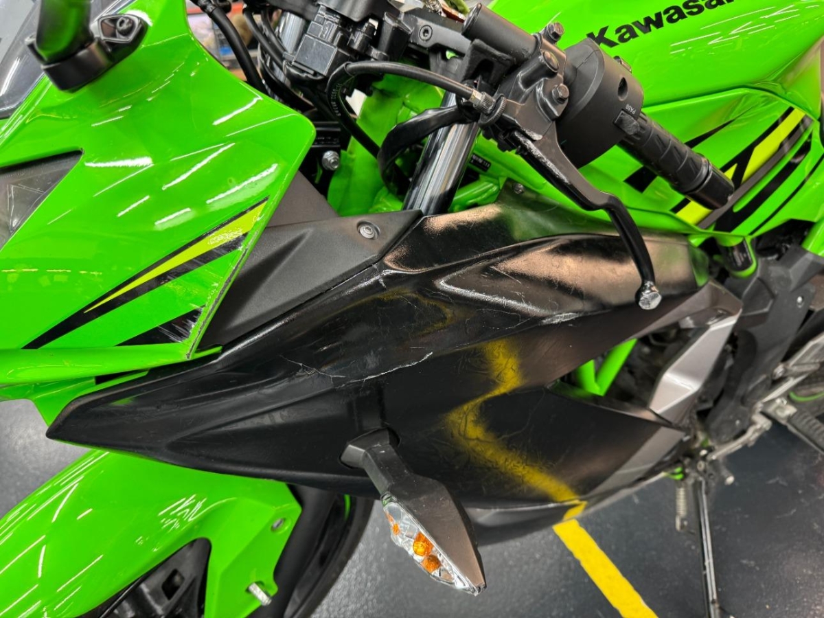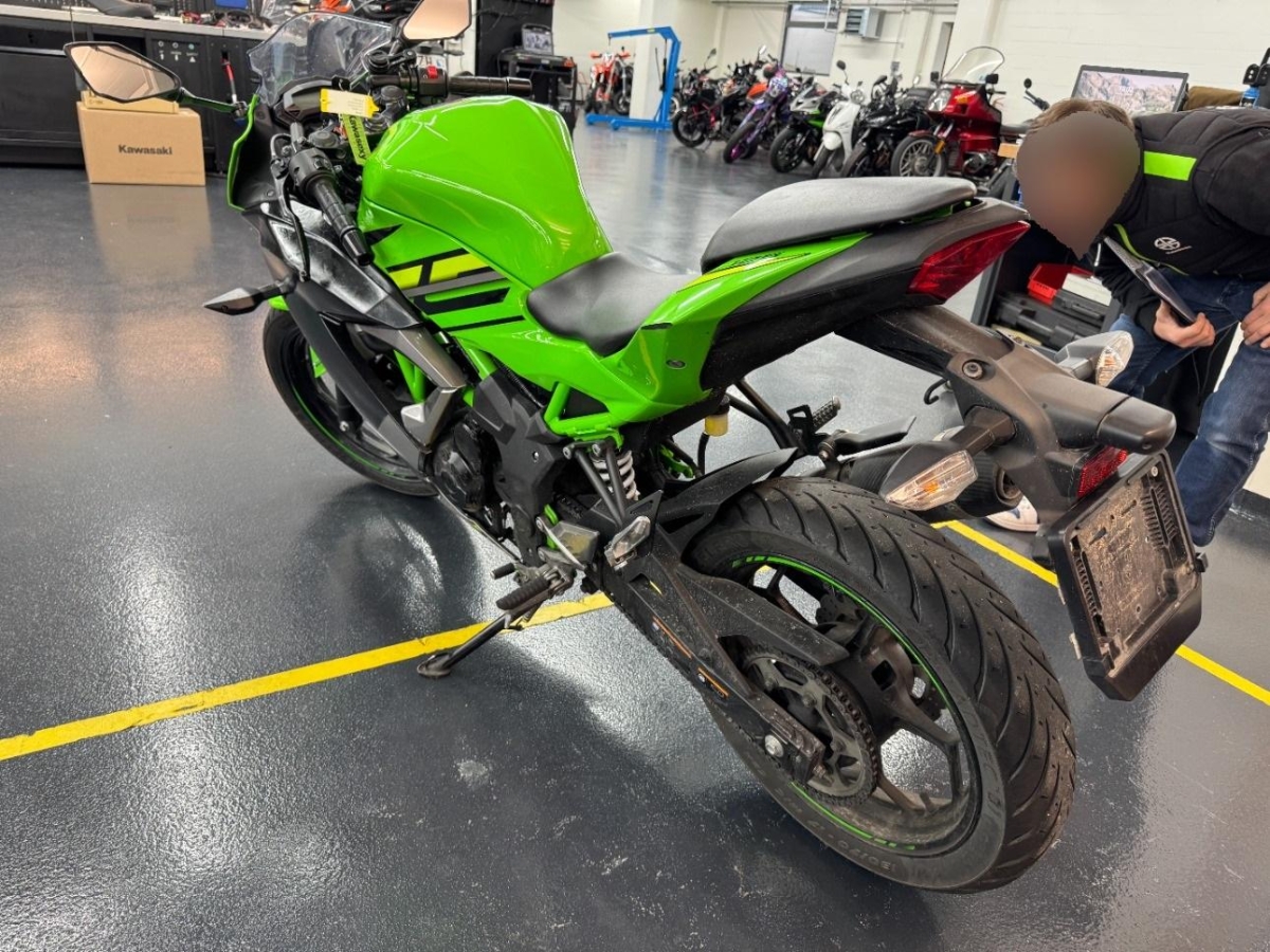 Auspufftopf, Aussenspiegel rechts, Diverse Anbauteile, Fussraster rechts, Gabelholm, Griff rechts, Heckverkleidung, Kupplungsgehäuse, Rahmen, Schwinge, Seite rechts, Sitz, Verschalungen rechts