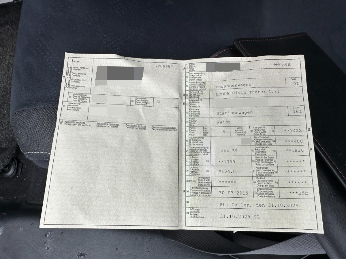 | Fahrzeugausweis | Vorhanden |