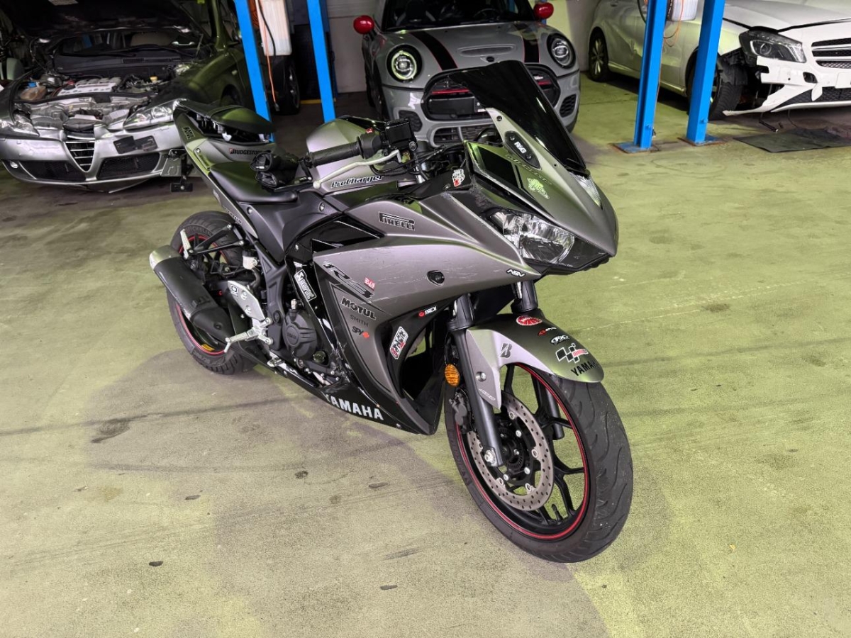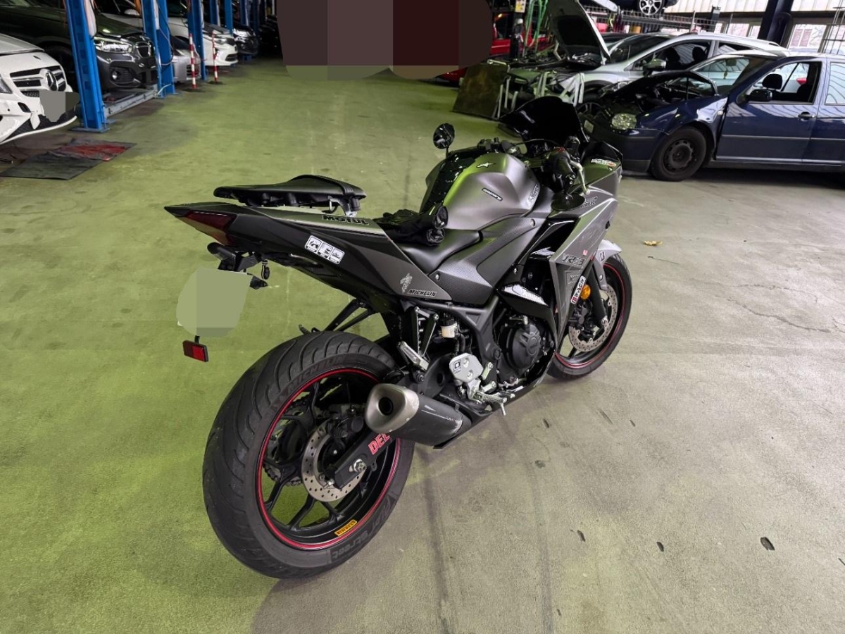 Antrieb, Armaturen, Auspuffkollektor, Aussenspiegel links, Diverse Anbauteile, Fussraster links, Getriebe, Griff links, Heck, Kupplungsgehäuse, Kühler, Lenkanschlag, Lenkschloss, Motor, Motorgehäuse, Rad hinten, Rücklicht, Scheinwerfer, Seite links, Sitz, Tank, Verschalungen links