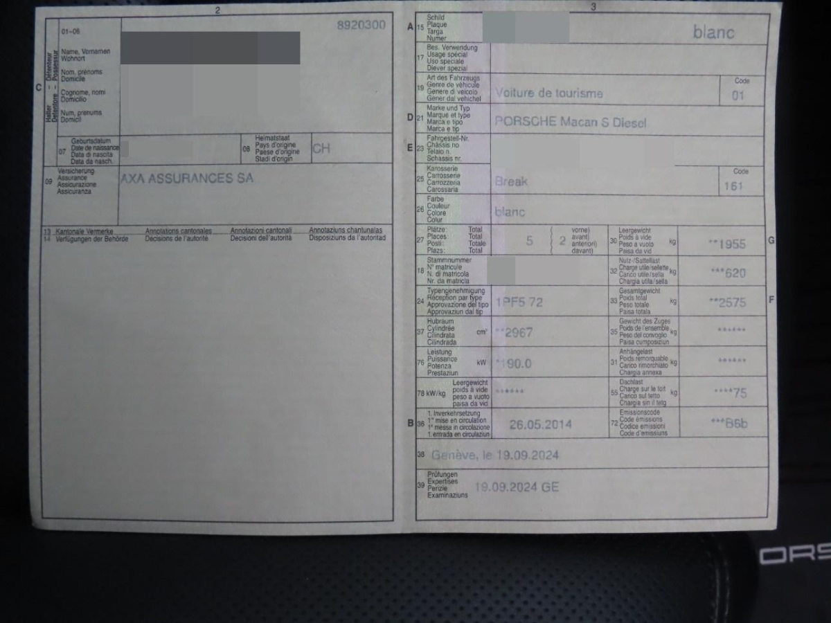Handschuhfach gekühlt, Höhenverstellbare Gurten vorne, Wegfahrsperre elektronisch, Heckscheibenheizung, Allradantrieb permanent, Lackierung: Uni-Lackierung, ISOFIX Kindersitzvorrichtung, Sequentielles 7-Gang-Getriebe mit Automatikfunktion, Audiosystem CDR Plus, Wartungsintervall-Anzeige, Scheibenwischer vorne mit Intervall, Heckklappe automatisch, Licht: LED Blink- und Positionsleuchten, Dachhimmel, Multifunktionsanzeige, Ablagefach im Kofferraum, Airbag: Seitenairbags, Mittelarmlehne hinten, Aktivkohlefilter (Geruchsfilter), Gurtstraffer vorne, Ablagen in den Türen, Airbag: Airbag Beifahrer deaktivierbar, 4 Leichtmetallfelgen 18J mit Pneu, Vorbereitung für Anhängevorrichtung, Airbag: Airbag Fahrer und Beifahrer, Klima: 2-Zonen-Klimaautomatik, Pollenfilter (Staubfilter), Elektrische Fensterheber vorne + hinten mit Komfortschliessung, Steckdose 12V, Auspuffanlage mit 2 Endrohren, Tempomat mit Geschwindigkeitsbegrenzer, Bremsassistent (BAS), Lenkrad: Multifunktionslenkrad mit Schaltwippen, Zentralverriegelung mit Fernbedienung, Elektronische Parkbremse, Partikelfilter und Oxydationskatalysator, Sitze: Rücksitzlehne geteilt abklappbar, Räder: Reifenreparatur-Set mit Kompressor, Airbag: Curtain Airbag, Licht: Drittes Bremslicht LED, Laderaumabdeckung, Bremsbelag-Verschleissanzeige, Wärmeschutzverglasung, Heckscheiben-Wisch-/Waschanlage, Leseleuchten, Einstiegsschienen mit Logo, Licht: Nebelschlussleuchte, Fahrstabilisierungssystem Porsche – Stability-Management (PSM), Lenkrad: Lenkrad längs- und höhenverstellbar, Regensensor für Scheibenwischer vorne, Nebelscheinwerfer, Aussentemperaturanzeige, Cupholder vorne und hinten, Mittelkonsole mit Ablagefach, Beleuchtetes und abschliessbares Handschuhfach, Bordcomputer, Sitze: Komfortsitze vorne elektr. verstellbar, Antiblockiersystem (ABS), Stoff-/Alcantara-Ausstattung, Assist: Seitenaufprall-Schutzsystem, Airbag: Thorax Seitenairbag für Fahrer und Beifahrer, Bremssättel lackiert, Licht: LED Heckleuchten, Licht: Fahrlichtassistent (automatisches Fahrlicht), Aussenspiegel rechts und links beheizt, elektrisch verstell- / und einklappbar, Lenkrad: Sportlenkrad, Licht: LED-Tagfahrlicht, Räder: Reifendruckkontrollsystem ( RDK )