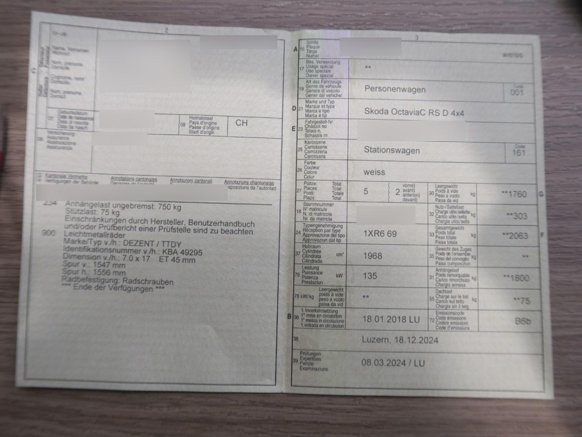 Dachreling schwarz, Komplette Telefonvorbereitung, Scheibenwischer vorne mit Intervall, Pollenfilter (Staubfilter), Elektrische Fensterheber vorne + hinten, Blinker in Aussenspiegel, Assist: Tempomat, Aussenspiegel in Wagenfarbe, Scheinwerfer-Waschanlage, Allradantrieb permanent, Media: DAB+ (Digital Audio Broadcasting), Berganfahrhilfe (Hill Holder), Elektronische Differentialsperre (XDS+), Multikollisionsbremse, Mittelarmlehne hinten, Stoff-/Alcantara-Ausstattung, Klima: Klimatisierungsautomatik Climatronic, Start/Stop-Funktion, Lichtassistent inkl. Regensensor, Aussenspiegel und Türgriffe in Wagenfarbe, USB-Anschluss, Sitze: 3 Kopfstützen hinten, Räder: Reifendruckkontrollsystem, Assist: Parksensoren hinten, Wegfahrsperre elektronisch, Heckscheiben-Wisch-/Waschanlage mit, Sitze: Vordersitze höhenverstellbar, Licht: LED Nebelscheinwerfer, Höhenverstellbare Gurten vorne, Airbag: Airbag Fahrer und Beifahrer, Radio SWING mit Touchscreen, Apple Connectivity und SD-Slot, Innenspiegel automatisch abblendbar, Airbag: Knie-Airbag für Fahrer, Voll-LED-Scheinwerfer, 3-Punkt-Sicherheitsgurte auf allen Plätzen, Verzurrösen, Ambiente Beleuchtung LED, Dekoreinlagen, ISOFIX Kindersitzvorrichtung, Make up-Spiegel rechts, Komfortblinker, Teppichfussmatten vorne und hinten, Gurtstraffer vorne und hinten, Zentralverriegelung mit Fernbedienung, Fussraumbeleuchtung vorne und hinten, Leichtmetallräder 7,5x18J GEMINI, Brillenfach, Elektronisches Stabilitäts-Programm (ESP), Cupholder vorne, Wärmeschutzverglasung, 2 klappbare Schlüssel, Maxi-DOT Display, Sitze: Rücksitzlehne mit Fernbedienung aus Kofferraum, Bremsenergie-Rückgewinnung, LED Heckleuchten Plus, Ablagen in den Türen, Drittes Bremslicht, Sitze: Mittelarmlehne vorne inkl. grosser Jumbo-Box (kühlbares Ablagefach), Media: 8 Lautsprecher, ABS, EBD elektronische Bremskraftverteilung, Partikelfilter und Oxydationskatalysator, Pedalerie mit Aluminiumauflage, Sonnenblende zweifach, Nichtraucherausführung, Lichtwarnsummer, Räder: Pannenset, Sitze: Rücksitzlehne geteilt abklappbar, Sitze: Kreuzstützen für Vordersitze verstellbar, Airbag: Airbag Beifahrer deaktivierbar, 3 Speichen Sport-Multifunktionslenkrad für Radio und Telefon mit Schaltwippen, Regenschirm, Nebelschlussleuchte, Kennzeichenbeleuchtung in LED, Antriebsschlupfregelung (ASR), Airbag: Seitenairbag für Fahrer und Beifahrer, LED Taschenlampe im Kofferraum,abnehmbar, Sequentielles 6-Gang-Getriebe mit Automatikfunktion, Befestigungsösen im Laderaum, Servolenkung, Aussenspiegel rechts und links beheizbar und elektrisch verstellbar, Heckscheibenheizung, Airbag: Window-Kopfairbags