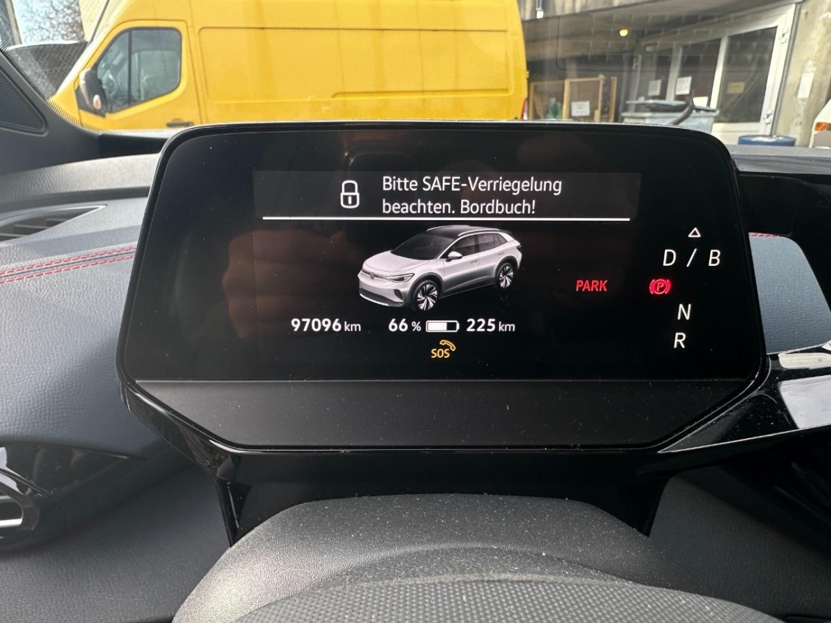 Media: Sprachbedienung, Pedale in Edelstahl, „Play & Pause”-Design, e-Sound (bis 25 km/h), DC Batterieladung bis 110 kW (Upgrade), Assist: Müdigkeitserkennung, Regensensor, Licht: Drittes Bremslicht, Warnton und -leuchte für nicht angelegte Gurte vorne und hinten, Wärmepumpe zur Reichweitenoptimierung, Getriebe: 1-Gang Getriebe automatisiert, Media: 6+1 Lautsprecher, Assist: Abbiegebremsfunktion und Ausweichunterstützung, Sitze: ISOFIX-Halteösen – Vorrichtung zur Befestigung von Kindersitzen auf Beifahrersitz und äusserer Rücksitzbank, Airbag: Airbag für Fahrer und Beifahrer mit Beifahrerairbag-Deaktivierung, Licht: LED-Matrix-Scheinwerfer mit automatischer Fahrlichtschaltung – inkl. Schlechtwetterlicht, Begrüssungsfunktion, Ladekabel für Schweizer Haushaltssteckdose (bis zu 1,8 kW), Assist: Spurhalteassistent Lane Assist, AC Batterieladung bis 11 kW, Tür- und Seitenverkleidung mit Insert in Kunstleder, Antiblockiersystem (ABS), Ambientebeleuchtung 30-farbig, Fahrprofilauswahl, Räder: Reifenkontrollanzeige, Licht: 3D LED-Rückleuchten mit dynamischer Blinkleuchte, Stossfänger hinten mit spezifischem Design und Diffusoreinsatz in Galvanograu, Licht: Tagfahrlicht integriert in drei Wabenelementen, Dach schwarz lackiert, Assist: Notbremsassistent „Front Assist” mit Fussgänger- und Radfahrererkennung, Licht: Umfeldbeleuchtung mit Logo-Projektion, Sitze: Kopfstützen vorne und hinten, Ladekabel für Wechselstrom-Ladestationen (bis zu 11 kW), Licht: Nebelschlussleuchte, DC Batterieladung bis 135 kW, Garantie: VW Garantie: 2 Jahre ohne Kilometerbegrenzung (ab 1. Inv.), Servolenkung elektromechanisch, Media: We Connect Plus, Assist: Einparkhilfe vorne und hinten, Dekor: Einfassung des Infotainment-Displays und der zentralen Bedienelemente in Schwarz, Media: Wireless App-Connect, Verbandtasche, Warndreieck und Warnweste, Sicherheitsinnenspiegel automatisch abblendbar, Assist: Verkehrszeichenerkennung, Wegfahrsperre elektronisch, Licht: Lichtband vorn zwischen Scheinwerfern, Heckscheiben-Wisch-/Waschanlage, Airbag: Kopf- und Seitenairbags vorn, mit Center-Airbag, ID. Light, Armlehne für Fahrer- und Beifahrersitz, Sitze: Rücksitzlehne mit Durchlademöglichkeit, Elektronisches Stabilitäts-Programm ESP, Assist: Automatische Distanzregelung ACC, Sitze: Fahrer- und Beifahrersitz mit Höheneinstellung, manuell, Klima: Klimaanlage „Air Care Climatronic” (1 Zone, keine Sprachbedienung), Aussenspiegel elektrisch einstellbar, beheizbar und anklappbar, Garantie: VW Garantie 3 Jahre Lack-Garantie (ab 1. Inv.), Media: 2 USB-C Schnittstellen vorn, Notrufsystem eCall, Schlüsselloses Startsystem – Keyless Start, Luftgitter an der Front in hochgl änzendem Schwarz lackiert, Polster: ArtVelours, Allradantrieb permanent, Heckscheibenheizung, Lenkrad: Multifunktionslenkrad in Leder, beheizbar, mit Touch-Bedienung, Räder: 20”-Leichtmetallräder „Ystad”, schwarz glanzgedreht – 4 Leichtmetallräder 8 J x 20″ vorn, 9 J x 20 hinten – Mobilitätsreifen 235/50 R20 vorn, 255/45 R20 hinten (selbstversiegelnd) – Radsicherungen mit erweitertem Diebstahlschutz – Abdeckung für Leichtmetallräder, Dachleiste in Schwarz matt, Zentralverriegelung mit Funkfernbedienung, Sitze: 5-Sitzer, Licht: Dynamische Fernlichtregulierung „Dynamic Light Assist”, Sonnenblenden mit Make-up-Spiegel, beleuchtet, Dreipunkt-Automatiksicherheitsgurte vorne mit Höheneinstellung und Gurtstraffer, Dachreling schwarz, 3-Punkt-Sicherheitsgurte auf allen Plätzen, Garantie: VW Garantie: 12 Jahre Karosserie-Garantie gegen Durchrostung, Sitze: Rücksitzlehne mit Mittelarmlehne und 2 Becherhaltern, Garantie: 8 Jahre oder 160’000 km Garantie auf HV-Batterie (ab 1. Inv.)