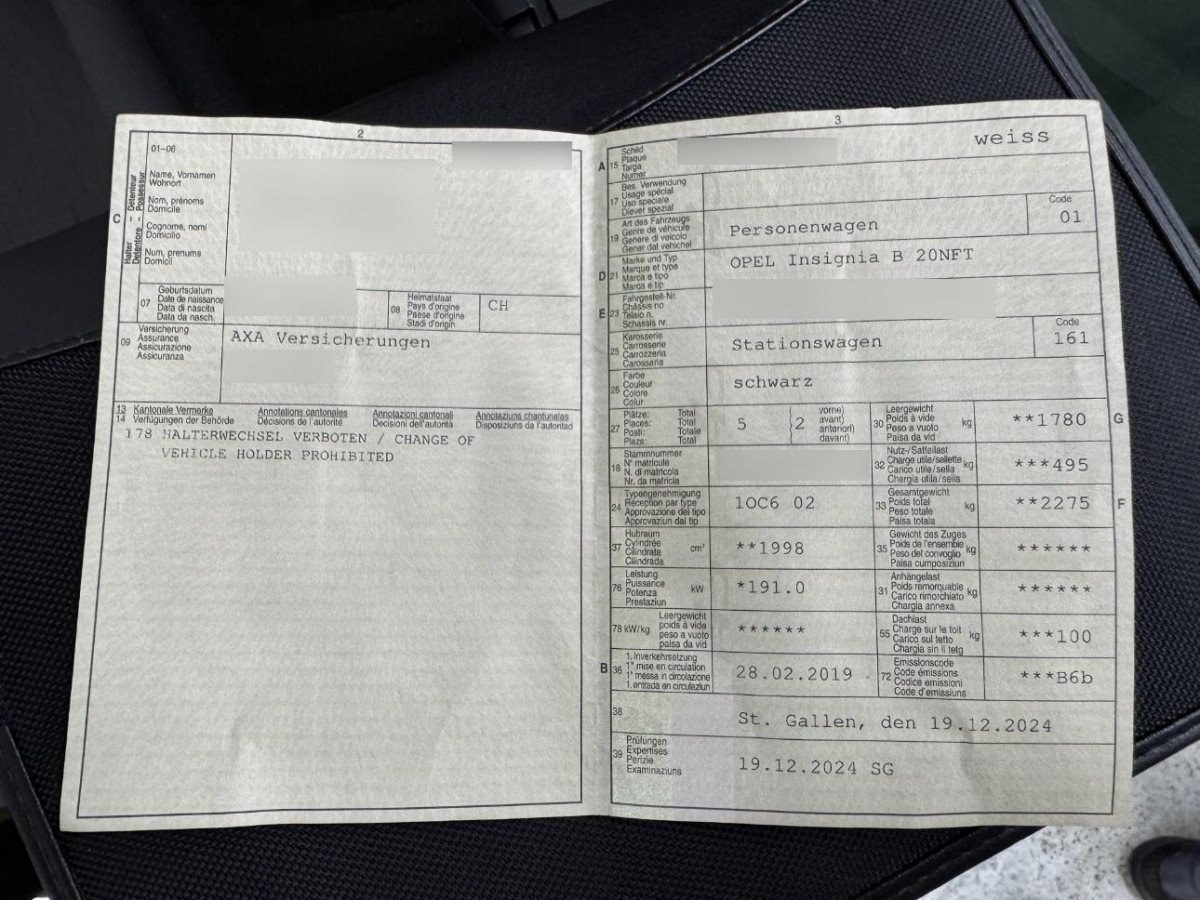 Licht: LED-Tagfahrlicht, 12-Volt-Steckdose hinten, ISOFIX Kindersitzvorrichtung, Automatisches Einschalten der Abblendlichter, Sitze: Fahrersitz 6-fach manuell verstellbar, Beleuchtetes Handschuhfach, Heckscheiben-Wisch-/Waschanlage, Assist: Park-Pilot vorne und hinten, Kühlergrill mit Chromzierrand, Ambientebeleuchtung, 2-Zonen-Klimaautomatik, Veloursfussmatten vorne und hinten, Mittelarmlehne hinten, Elektrische Fensterheber hinten, Elektronisches Stabilitäts-Programm ESP, Assist: Rückfahrkamera, Elektrische Fensterheber vorne, Assist: Bremsassistent (BAS), Katalysator geregelt, Rücksitzlehne abklappbar, Laderaumabdeckung, Schlüsselloses Schliess- und Startsystem, Servolenkung, Dachspoiler, 3 Kopfstützen hinten, Einstiegsschienen vorne mit Logo, Reifenreparatur-Set (Tire Fit), Rücksitzlehne hinten elekt. abklappbar One-Touch, Räder: Reifendruck-Kontrollanzeige, Elektronische Parkbremse, Abgedunkelte Seiten- und Heckscheibe, Airbag: Window-Kopfairbags, Aussenspiegel rechts und links beheizbar und elektrisch verstellbar, Gurtstraffer vorne, Kopfstützen hinten höhenverstellbar, Elektronische Traktionskontrolle (ASR/TCS), Zentralverriegelung mit Fernbedienung, Airbag: Airbag Fahrer und Beifahrer, Media: Digitaler Radioempfang (DAB/DAB+), Innenspiegel automatisch abblendbar, Pedalerie mit Aluminiumauflage, 2 USB-Schnittstellen hinten, Allradantrieb permanent, Radio IntelliLink RF900 Navi, Heckscheibenheizung, Kopfstützen vorne höhenverstellbar, Aussenspiegel in Wagenfarbe, Dachreling schwarz, Assist: Geschwindigkeitsregler, Airbag: Seitenairbag für Fahrer und Beifahrer, Lackierung: Uni-Lackierung, Getriebe: 8-Stufen-Automat sequentiell, Nebelscheinwerfer, Sitze: Einstellbare Lendenwirbelstütze für den Fahrersitz, Leichtmetallräder im 5-Speichen-Design 8,5x18J, Regensensor für Scheibenwischer vorne, Sichtpaket, FlexOrganizer Vorbereitung, Sitze: Rücksitze heizbar, Licht: Nebelschlussleuchte, Leuchtweitenregulierung von innen, Doppelter Gepäckraumboden, Flex Ride Premium Fahrwerk, Klima: Pollenfilter (Staubfilter), Antiblockiersystem (ABS), Cupholder vorne, Beide Make up-Spiegel beleuchtet, Dachreling silber, Sitze: Vordersitze heizbar, Räder: Reifendruckverlust-Warnsystem, Türen: Kindersicherung an den hinteren Türen, Licht: Halogenscheinwerfer, Lederlenkrad OPC Line, Licht: Drittes Bremslicht, Wegfahrsperre elektronisch, 3-Punkt-Sicherheitsgurte auf allen Plätzen, Frontkamera mit Verkehrsschilderkennung und Spurassistent, Verkehrsschild-Erkennungssystem, Sitze: Rücksitzlehne geteilt abklappbar