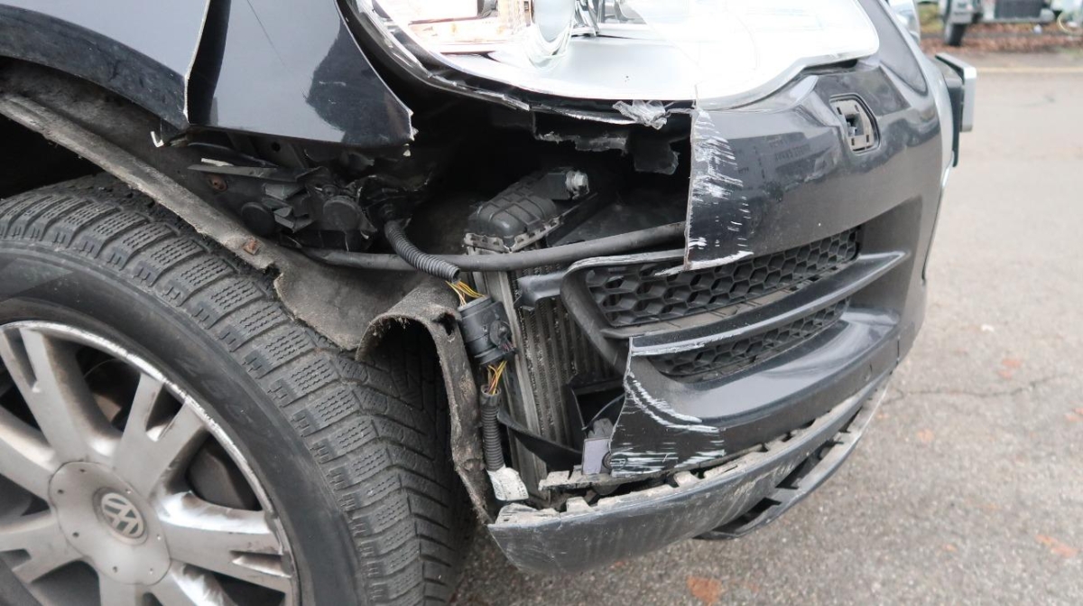 Federbein vorne rechts, Front, Front rechts, Interieur verschmutzt, Klimakühler, Kotflügel rechts, Kühler, Kühlgitter, Längsträger vorne rechts, Querträger, Rad vorne rechts, Radaufhängung vorne rechts, Radhaus vorne rechts, Scheinwerfer rechts, Schlossträger, Stosstange vorne, Türe vorne rechts