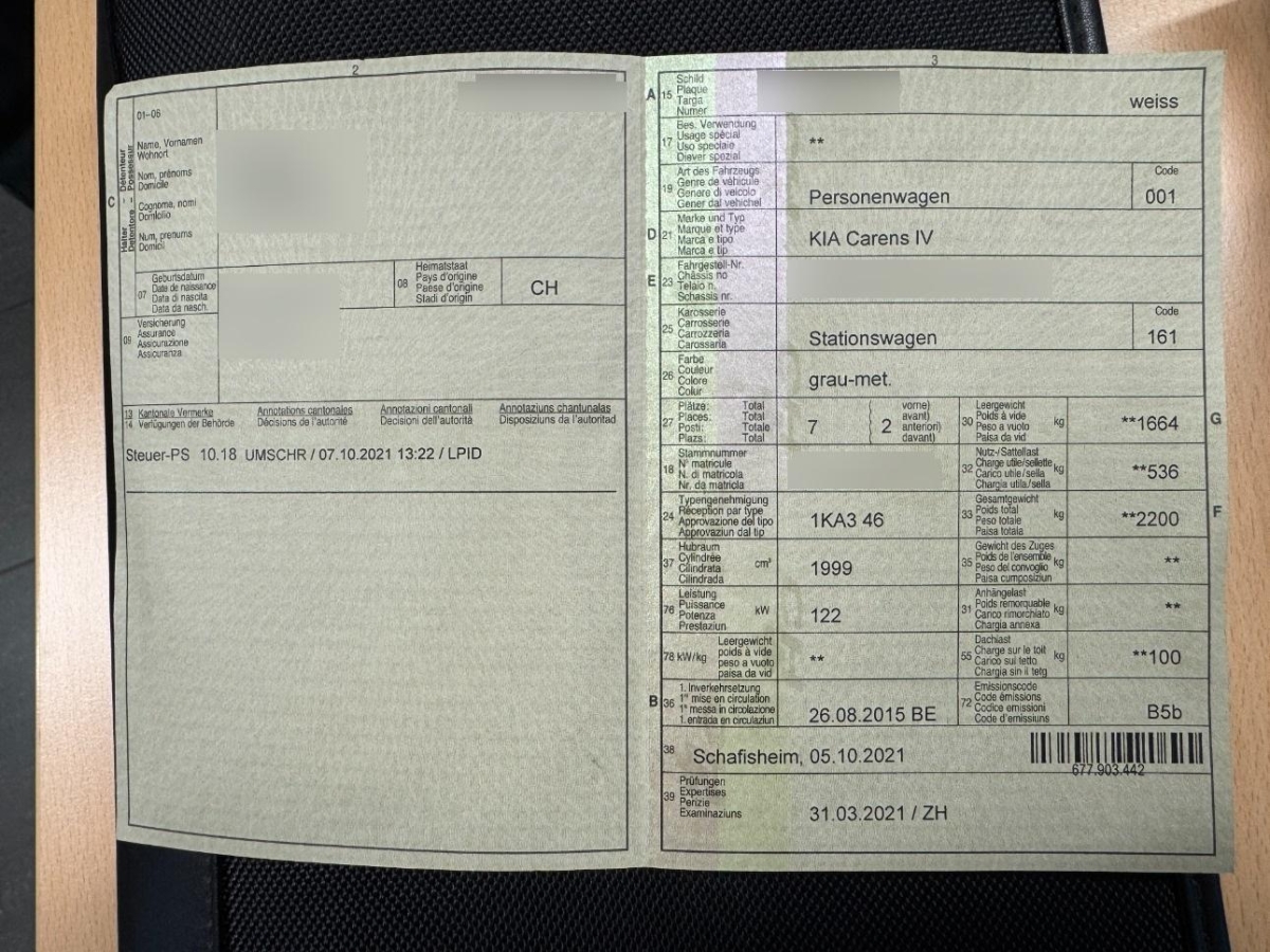 Lenkrad: Lenkradheizung, Reserverad, Nebelscheinwerfer mit Abbiegelicht, Aussenspiegel in Wagenfarbe, Wegfahrsperre elektronisch, Start-/Stop-Knopf, Dachreling, Pollenfilter (Staubfilter), Park Distance Control vorne und hinten, Flex Steer, Kreuzstütze für Fahrersitz elektrisch verstellbar, Bordcomputer, Licht: LED Heckleuchten, 4 Leichtmetallfelgen 17J mit Pneu, Handschuhfach gekühlt, Media: AUX-Anschluss, Radio mit Fernbedienung, Assist: Lichtsensor, Licht: Nebelschlussleuchte, Katalysator geregelt, Airbag: Airbag Fahrer und Beifahrer Beifahrerairbag abschaltbar, Cupholder hinten, Steckdose im Fond, Assist: Rückfahrkamera, Lenkrad: Lenkrad und Schaltknauf in Leder, Assist: Tempomat mit Geschwindigkeitsbegrenzer, Window-Kopfairbags, Ledersitze, Media: Radio/CD-Player, Digital Uhr, Getönte Scheiben, Türgriffe aussen verchromt, Wassertemperaturanzeige, TPMS Reifendrucküberwachungssystem, Elektrische Fensterheber vorne + hinten, Assist: Aktiv Bremslicht (ESS), Smart Key, Gepäcknetz(e), Gurtstraffer vorne, VSM (Vehicle Stability Management), Licht: Drittes Bremslicht, Media: USB-Anschluss, Heckscheibenheizung, Drehzahlmesser, Assist: Berganfahrassistent (HAC), iPod Anschluss, 3. Sitzreihe, Sitze: Fahrersitz elektrisch verstellbar, Laderaumabdeckung, Zentralverriegelung mit Fernbedienung, Lenksäule in Höhe und Tiefe einstellbar, Innenspiegel automatisch abblendbar, Sitze: Fahrersitz höhenverstellbar, Rücksitze heizbar, Höhenverstellbare Gurten vorne, Airbag: Seitenairbag für Fahrer und Beifahrer, Stoff-Ausstattung, Kopfstützen hinten höhenverstellbar, Getönte Scheiben Privacy, Regensensor für Scheibenwischer vorne, Tageskilometerzähler, 6-Stufen-Automat sequentiell, Aussenspiegel rechts und links beheizt, elektrisch verstell- / und einklappbar, Elektronisches Stabilitäts-Programm (ESP), Sicherheitsgurte: 3-Punkt-Sicherheitsgurte an allen Sitzplätzen vorn höhenverstellbar, Steckdose, Stossstangen in Wagenfarbe, ABS, EBD elektronische Bremskraftverteilung verteilung, Blinker in Aussenspiegel, LED-Tagfahrlicht, ISOFIX Kindersitzvorrichtung, Aussenspiegel elektrisch einklappbar, Servolenkung, Lackierung: Uni-Lackierung, Rücksitzlehne geteilt abklappbar, Kopfstützen vorne höhenverstellbar, Stabilitäts- und Traktionskontrolle (STC), 6 Lautsprecher, Vordersitze heizbar, Laderaumbeleuchtung LED, Bluetooth Freisprecheinrichtung, Nebelscheinwerfer, 2-Zonen-Klimaautomatik, Diebstahlwarnanlage
