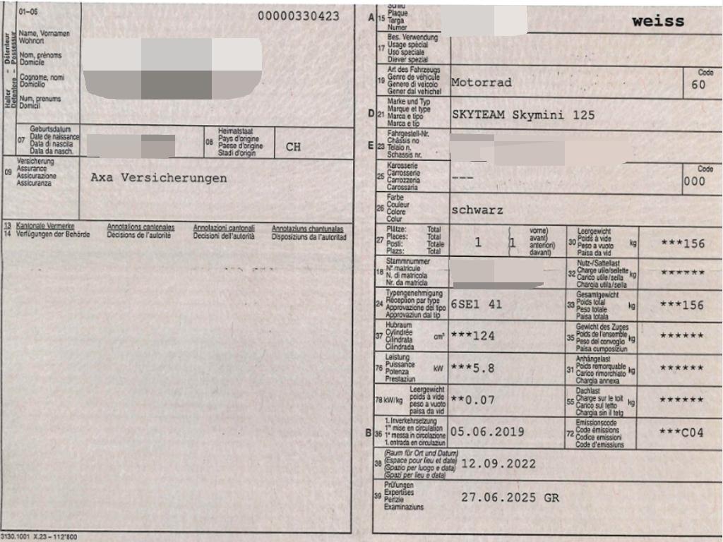 Die (vom Fahrzeugexperten) ermittelten Reparaturkosten beziehen sich auf das versicherte Ereignis. Allfällige zusätzliche, nicht versicherte Schäden/Vorschäden, sind in den Reparaturkosten nicht enthalten. Die deklarierten Ausstattungsmerkmale können von der effektiven Ausstattung abweichen.