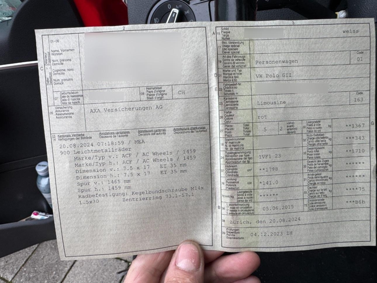 Schaltknauf und Handbremshebel in Leder, Umfeldbeobachtung 'Front-Assist’ mit City-Notbremsfunktion, Radiosystem Composition Colour, Aussenspiegel rechts und links beheizbar und elektrisch verstellbar, Heckspoiler, Klima: Klimatisierungsautomatik Climatronic, 3 Kopfstützen hinten, Polster: Stoff-Ausstattung, Handschuhfach klimatisierbar, Antriebsschlupfregelung (ASR), Wegfahrsperre elektronisch, Zentralverriegelung mit Fernbedienung, ISOFIX Kindersitzvorrichtung, Make up-Spiegel links, Gurtkontrolle, Modellbezeichnungen (Logo & Model), Leseleuchten vorne, Höhenverstellbare Gurten vorne, Innenspiegel automatisch abblendbar, Heckleuchten dunkelrot, Make up-Spiegel rechts, Licht: LED-Tagfahrlicht, Laderaumabdeckung, Applikationen Chrom, Servolenkung, Abgedunkelte Seiten- und Heckscheibe, Kofferraumbeleuchtung, Cupholder vorne, Sequentielles 7-Gang-Getriebe DSG mit Automatikfunktion, Seitenairbag für Fahrer und Beifahrer, Pedalerie mit Aluminiumauflage, Lichtwarnsummer, Lichtassistent inkl. Regensensor, Wärmeschutzverglasung, Elektrische Fensterheber vorne + hinten, Sitze: Rücksitzlehne geteilt abklappbar, Klima: Pollenfilter (Staubfilter), Drehzahlmesser, Tageskilometerzähler, Antiblockiersystem (ABS), Assist: Berganfahrassistent, Stossstangen in sportlichen Design, Komfortblinker, Katalysator geregelt, Räder: Abschliessbare Radschrauben, Teppichfussmatten vorne und hinten, Sitze: Vordersitze mit höheneinstellung, Airbag: Airbag Fahrer und Beifahrer, Schublade unter den Vordersitzen, Leder-Multifunktionslenkrad im 3-Speichen-Design, Innenlicht-Abschaltverzögerung, Dachhimmel schwarz, Bremssättel rot lackiert, Ablagen in den Türen, Nebelscheinwerfer mit integrierter Abbiegelichtfunktion, Sportsitze vorne, Kartentaschen an den Rückenlehnen, Beide Make up-Spiegel beleuchtet, Licht: Nebelschlussleuchte, Elektronische Differentialsperre (XDS), Kennzeichenbeleuchtung in LED, Bremsenergie-Rückgewinnung, Licht: Drittes Bremslicht, Licht: LED Scheinwerfer, 2 Schlüssel mit Fernbedienung, 3-Punkt-Sicherheitsgurte auf allen Plätzen, Bremsassistent (BAS), Elektronisches Stabilitäts-Programm ESP, Blinker in Aussenspiegel, Räder: Reifenkontrollanzeige, Airbag: Window-Kopfairbags, Lenkrad: Lenkrad längs- und höhenverstellbar, Heckscheiben-Wisch-/Waschanlage mit, Assist: Müdigkeitserkennung, Leseleuchten hinten, Aussenspiegel in Wagenfarbe, Airbag: Airbag Beifahrer deaktivierbar, Reserverad mit Stahlfelge, Gurtstraffer vorne, Fahrwerk: Sportfahrwerk, Verchromtes Auspuffendrohr, Türgriffe aussen in Wagenfarbe, Color-Paket, Multifunktionsanzeige Plus, Stopp-/Start-System, 4 Leichtmetallfelgen 17J mit Pneu, Tempomat