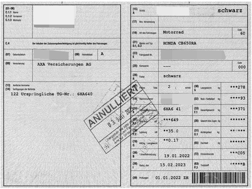 Die (vom Fahrzeugexperten) ermittelten Reparaturkosten beziehen sich auf das versicherte Ereignis. Allfällige zusätzliche, nicht versicherte Schäden/Vorschäden, sind in den Reparaturkosten nicht enthalten. Die deklarierten Ausstattungsmerkmale können von der effektiven Ausstattung abweichen.