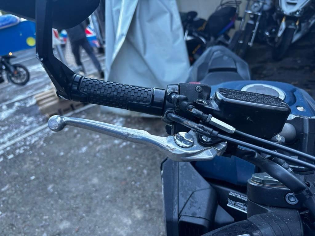 Auspufftopf, Aussenspiegel rechts, Front, Fussraster rechts, Gabelholm, Griff rechts, Kupplungsgehäuse, Kühler, Lenker, Motorgehäuse, Rad vorne, Seite rechts, Tank, Verschalungen hinten, Verschalungen rechts, Verschalungen vorne