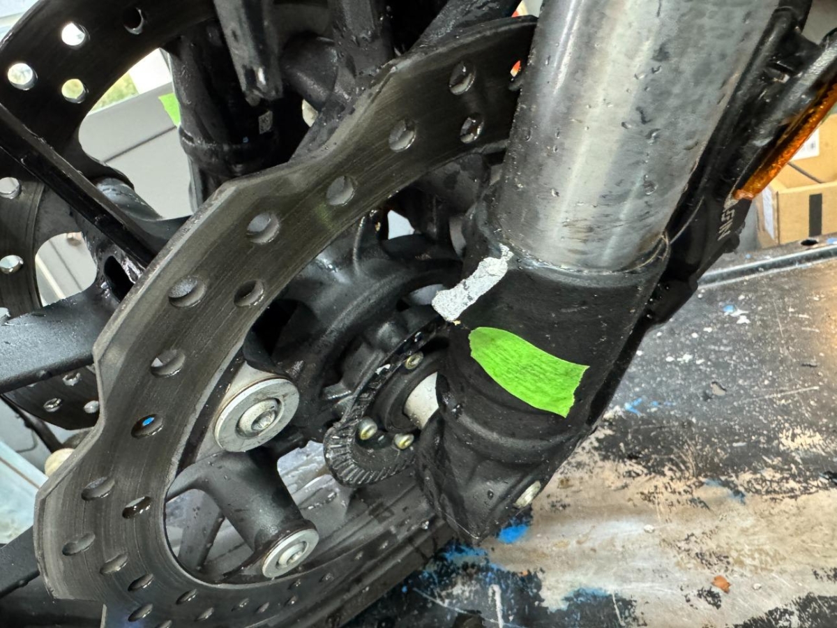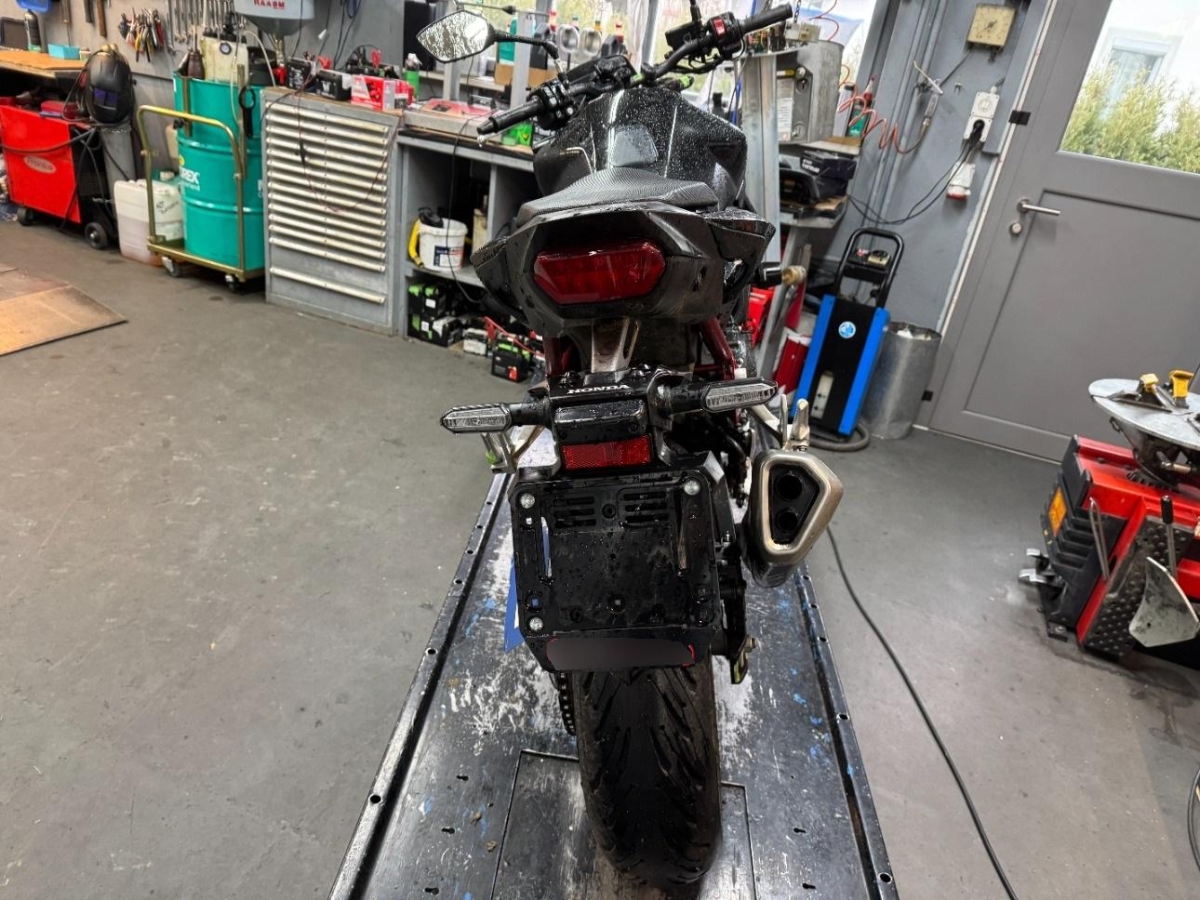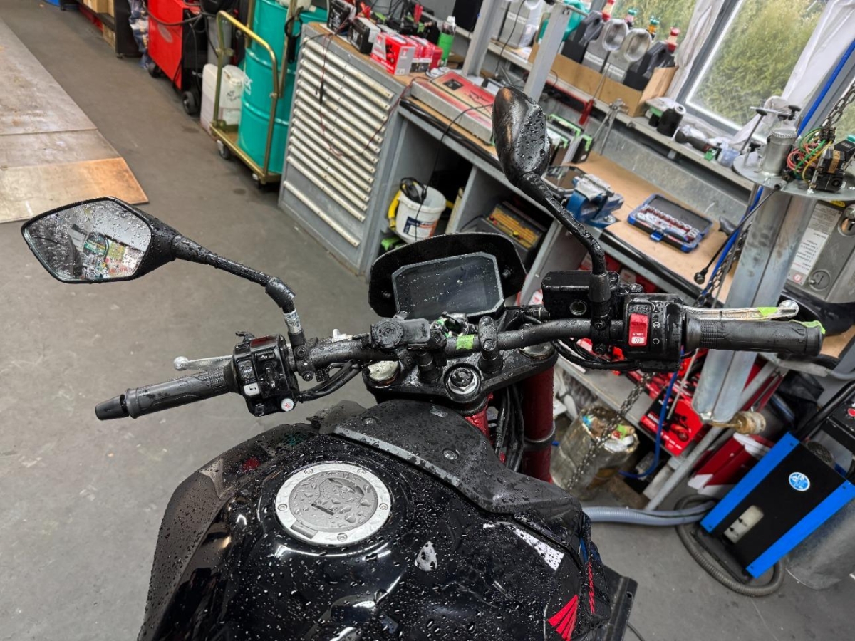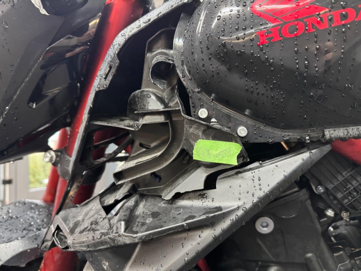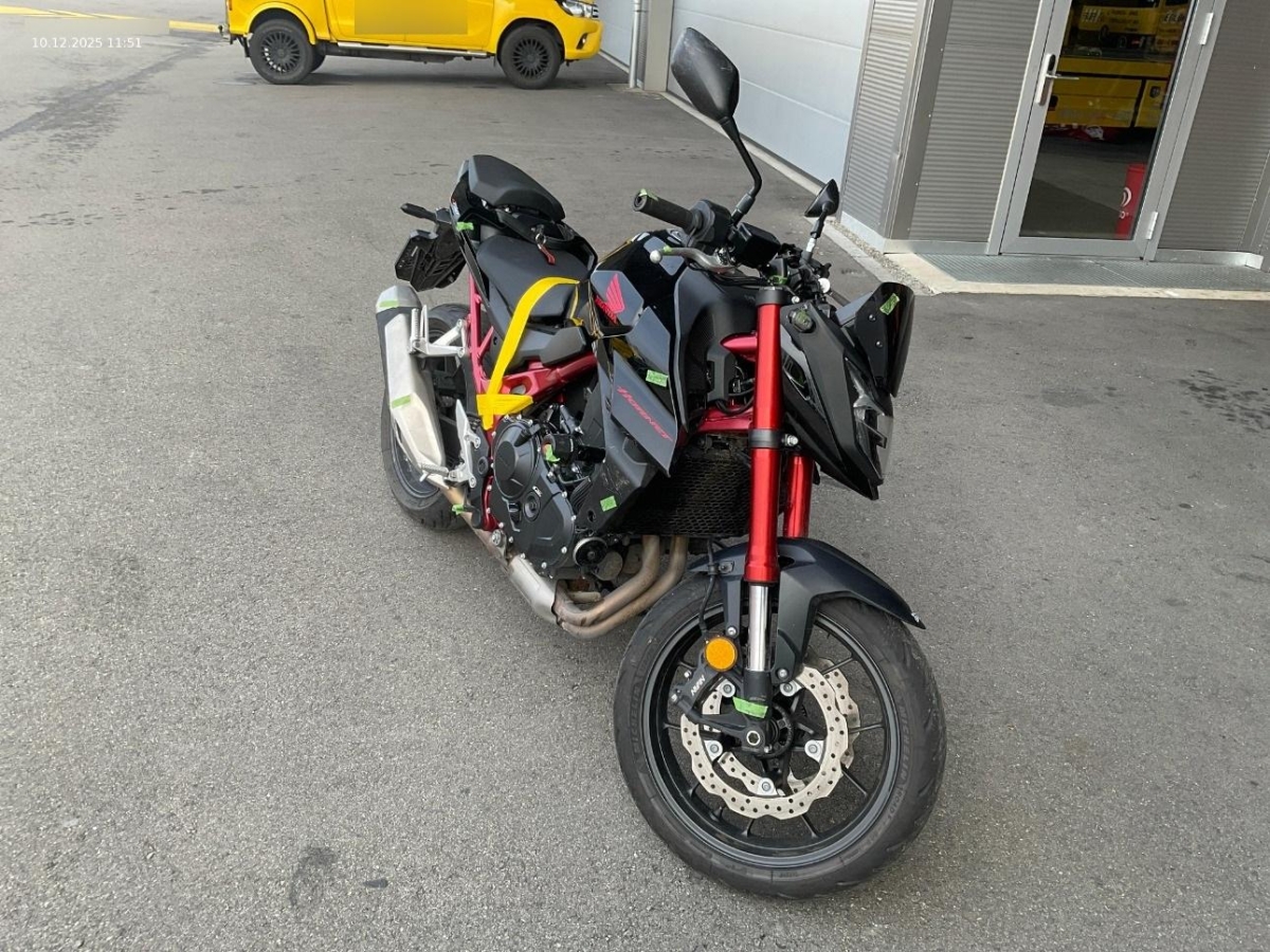 Auspufftopf, Aussenspiegel links, Aussenspiegel rechts, Diverse Anbauteile, Front, Fussraster links, Fussraster rechts, Gabelholm, Griff links, Griff rechts, Heckverkleidung, Kühler, Lenker, Rad vorne, Schutzblech vorne, Schwinge, Tank, Verschalungen links, Verschalungen rechts, Verschalungen vorne