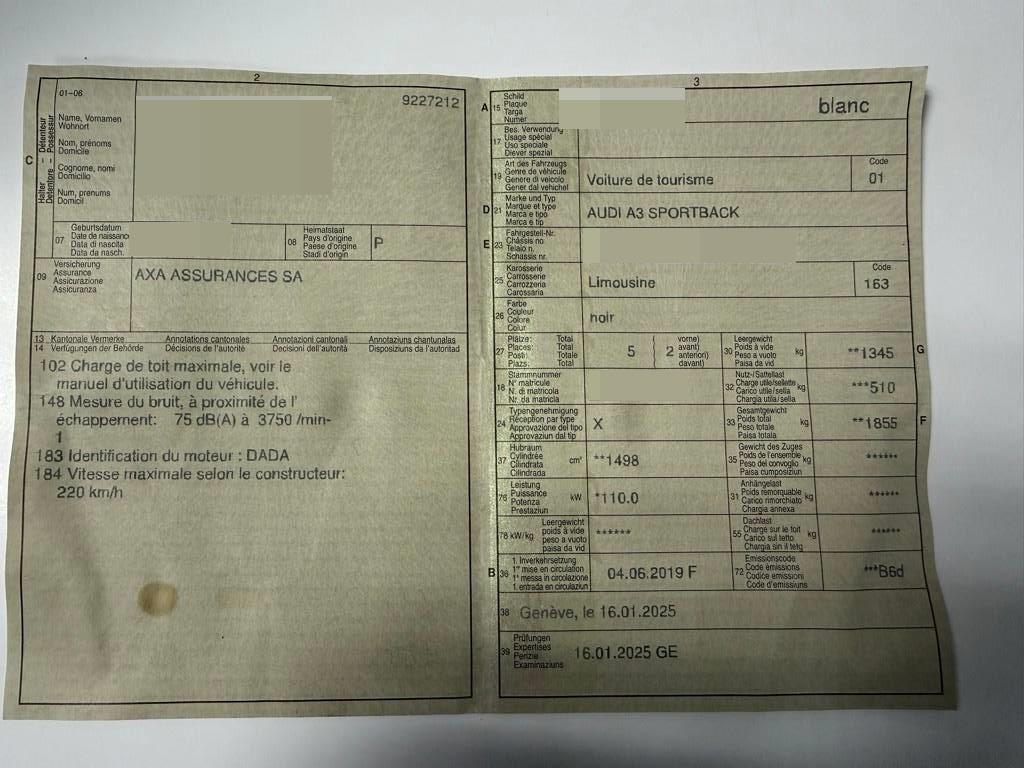 Kopfstützen vorne höhenverstellbar, Katalysator geregelt, Aschenbecher und Zigarettenanzünder, Antriebsschlupfregelung (ASR), Media: Bluetooth-Schnittstelle, Antiblockiersystem (ABS), LED Blinker im Aussenspiegel, Airbag: Window-Kopfairbags, Räder: Leichtmetallräder im 5-Arm-Design 17J, Fahrwerk: Sportfahrwerk, Elektronisches Stabilitäts-Programm (ESP), Kindersicherung an den hinteren Türen, Licht: Tagfahrlicht, Seitenairbag für Fahrer und Beifahrer, Innenraumbeleuchtung, Ablagefach, Knie-Airbag für Fahrer, Sequentielles 7-Gang-Getriebe mit Automatikfunktion, Laderaumabdeckung, Licht: Drittes Bremslicht, Einstiegsleisten Carbon Camouflage matt, Dachhimmel in grau, Aussentemperaturanzeige, Kindersicherung im Fahrgastraum, Polster: Stoff-Ausstattung, Parkbremse, elektromechanisch, Aussenspiegel in Wagenfarbe, Verzurrösen, Beleuchtetes Handschuhfach, Wassertemperaturanzeige, Tageskilometerzähler, Aussenspiegel rechts und links elektrisch verstell- und beheizbar und Scheibenwaschdüsen beheizbar, Start/Stop-Funktion, Assist: Bremsassistent (BAS), Licht: Licht- und Regensensor, Sonnenblende zweifach, Modellbezeichnungen (Logo & Model), Teppichfussmatten vorne und hinten, Media: MMI Radio plus, Heckscheibenheizung, Lenkrad: Lenkrad längs- und höhenverstellbar, Ladeboden variabel, Lackierung: Uni-Lackierung, Räder: Reifenreparatur-Set (Tire Fit), Servolenkung, Multimediabuchse AUX-IN, Wärmeschutzverglasung, Xenon-plus, 3-Punkt-Sicherheitsgurte auf allen Plätzen, Innenspiegel abblendbar, Media: Digitaler Radioempfang (DAB), Sitze: Sportsitze vorne, Audi drive select, Airbag: Airbag Fahrer und Beifahrer, Lichtwarnsummer, 3 Kopfstützen hinten, Drehzahlmesser, Zentralverriegelung mit Fernbedienung, Wartungsintervall-Anzeige, Räder: Reifendruck-Kontrollanzeige, Rücksitzlehne geteilt abklappbar, Airbag: Airbag Beifahrer deaktivierbar, Radwechselwerkzeug, Kindersitzvorrichtung ISOFIX mit Deaktivierungsschalter für Beifahrer- Airbag, Garantie: 2 Jahre ohne Kilometerbegrenzung (ab 1. Inv.), Leuchtweitenregulierung automatisch, Getönte Scheiben, Make up-Spiegel rechts, Multifunktions-Sportlederlenkrad 3-Speichen, Wegfahrsperre elektronisch, Digital Uhr, Gurtstraffer vorne und hinten, Dachspoiler, Innenlicht-Abschaltverzögerung, Kofferraummatte, Media: 8 Lautsprecher, Licht: Nebelschlussleuchte, Einlagen Aluminium Mistral, Steckdose 12V, Wagenheber, Warndreieck, Adaptives Bremslicht, Stossstangen in Wagenfarbe, Make up-Spiegel links, Fahrer-Informationssystem monochrom, Seitenaufprall-Schutzsystem, Aluminium-Applikationen, Fussgängererkennung, Klima: Pollenfilter (Staubfilter), Elektrische Fensterheber vorne + hinten, Sitze: Vordersitze höhenverstellbar, Klima: Klimaanlage
