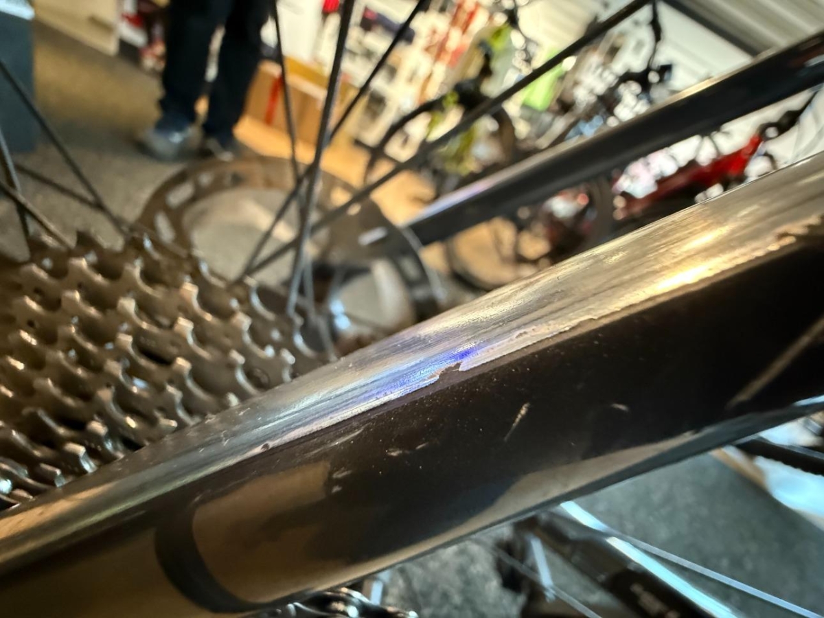 Beschädigungen an Gabel, Rahmen, Lenker, Sattel und Sattelrohr, Schaltwerk, Vorderradfelge