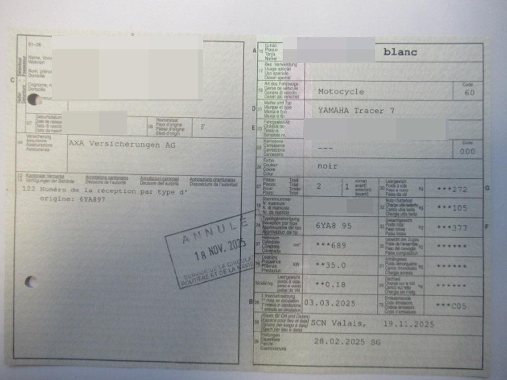 Zusätzliche Beschädigungen: Motorblock, Rahmen verbogen