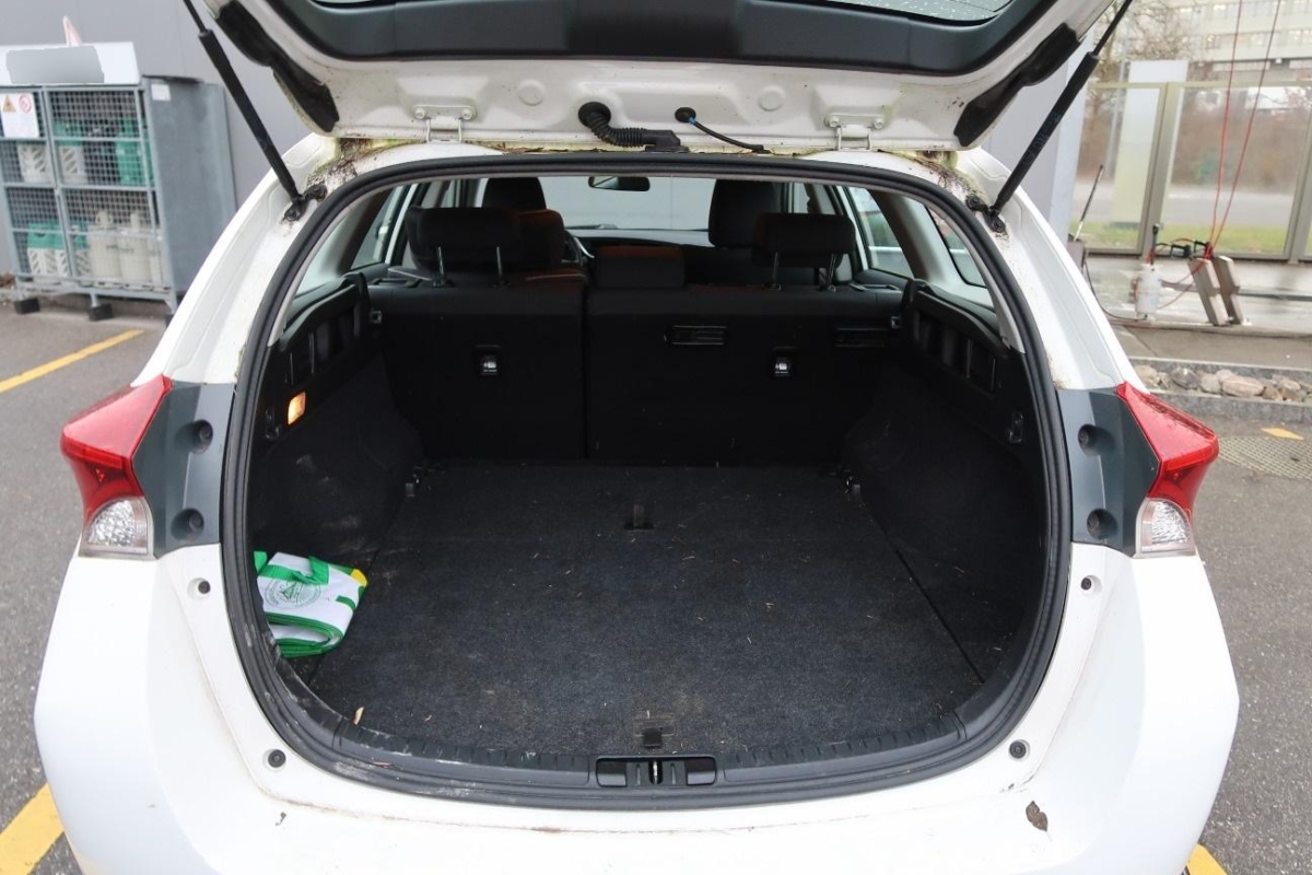 Digital Uhr, Sitze mit Schleudertrauma-Schutzsystem, Assist: Berganfahrhilfe (Hill Assist Control – HAC), ABS, EBD elektronische Bremskraftverteilung, Seitenaufprall-Schutzsystem, Start-/Stop-Automatik, Licht: Drittes Bremslicht, Cupholder vorne und hinten, Katalysator geregelt, Kopfstützen hinten höhenverstellbar, Gepäckraumboden aufstellbar, Smart Entry-/Start-System, Assist: Tempomat, Getriebe: Stufenloser Automat, Airbag: Window-Kopfairbags, Airbag: Airbag Beifahrer deaktivierbar, UV-absorbierende Verglasung, Airbag: Seitenairbag für Fahrer und Beifahrer, Lederhandbremshebel, Klima: Klimatisierungsautomatik, Lenkrad: Lenkrad, Schaltknauf und Handbremshebel Leder, 3-Punkt-Sicherheitsgurte auf allen Plätzen, Stabilitäts- und Traktionskontrolle (VSC und TRC), Licht: Abblendlichtausschaltverzögerung 'Follow me home’, Sitze: Fahrersitz höhenverstellbar, Aussenspiegel rechts und links beheizbar und elektrisch verstellbar, Media: Bluetooth-Schnittstelle, Mittelarmlehne hinten, Gurtkontrolle, Pollenfilter (Staubfilter), LED Blinker im Aussenspiegel, Kartentaschen an den Rückenlehnen, Media: 6 Lautsprecher, Sitze: Beifahrersitz höhenverstellbar, Aussenspiegel und Türgriffe in Wagenfarbe, Licht: LED-Tagfahrlicht, Heckscheiben-Wisch-/Waschanlage, Lenkrad: Lenkrad längs- und höhenverstellbar, Servolenkung, Gepäcktrennnetz, Drehzahlmesser, Make up-Spiegel links, Kreuzstütze für Fahrersitz verstellbar, Dämmerungssensor, Zentralverriegelung mit Fernbedienung, Lackierung: Uni-Lackierung, Kindersicherung an den hinteren Türen, Mittelarmlehne vorne, Fahrer-Informationssystem mit Farbdisplay, Wärmeschutzverglasung, Scheibenwischer vorne mit Intervall, Media: Digitaler Radioempfang (DAB/DAB+), Licht: LED Heckleuchten, Laderaumabdeckung, Aussenspiegel elektrisch einklappbar, Airbag: Knie-Airbag für Fahrer, Assist: Rückfahrkamera, ISOFIX Kindersitzvorrichtung, Räder: 4 Leichtmetallfelgen 16J mit Pneu, Räder: TPMS Reifendrucküberwachungssystem, Licht: Nebelschlussleuchte, Gurtstraffer mit Gurtkraftbegrenzer vorne, Make up-Spiegel rechts, 12-Volt-Steckdose vorne, Dachreling silber, Heckscheibenheizung, Halogenhaupt- und Fernscheinwerfer in Klarglasoptik, Licht: Nebelscheinwerfer, Wegfahrsperre elektronisch, Media: Multimedia Audiosystem Toyota Touch 2, 12 Volt-Steckdose im Laderaum, Elektrische Fensterheber vorne + hinten, Seitenfenster-Zierleisten verchromt, Start-/Stop-Knopf, Media: USB+AUX-Anschluss, Radiofernbedienung, Getönte Scheiben, Sitze: Vordersitze heizbar, Räder: Reifenreparatur-Set (Tire Fit), Regensensor für Scheibenwischer vorne, Tankdeckel-Entriegelung von innen, Innenspiegel automatisch abblendbar, Bremsassistent (BAS), Sitze: Rücksitzlehne geteilt abklappbar, Kopfstützen vorne höhenverstellbar, Ablagen in den Türen, Airbag: Airbag Fahrer und Beifahrer, Polster: Ledersitze, Stop/Start-Technologie
