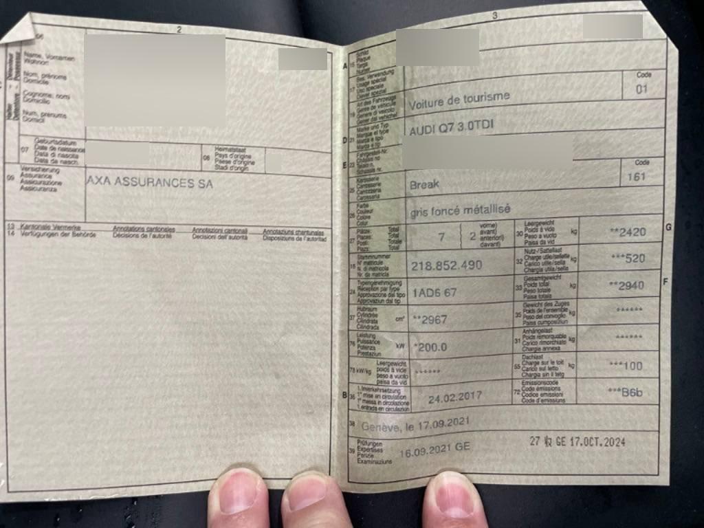 Sonnenblende Fahrer und Beifahrerseite mit beleuchtetem Spiegel, Elektrische Kindersicherung, Automat Tiptronic, Servolenkung geschwindigkeitsabhängig, Media: MMI Radio plus, Airbag: Window-Kopfairbags, ISOFIX-Befestigungspunkte für Kindersitz an den äusseren Rücksitzen, Dachhimmel, KEYLESS GO, Digital Uhr, Xenon-plus, Start-/Stop-Knopf, Ablagefach, Klima: 2-Zonen-Klimaautomatik, Sicherheitslenksäule, Airbag: Airbag Fahrer und Beifahrer, Gurtkontrolle, Assist: Einparkhilfe plus, Licht: Drittes Bremslicht, Klima: Pollenfilter (Staubfilter), Licht: Licht- und Regensensor, Sitze: Normalsitze, Dachreling Alu-Look, Bremsenergie-Rückgewinnung, Wärmeschutzverglasung, Kindersitzvorrichtung ISOFIX Beifahrerseite, Media: Bluetooth-Schnittstelle, Scheibenwischer vorne mit Intervall, Paket: Glanzpaket, Multifunktions-Lederlenkrad 4-Speichen mit Schaltwippen, Audi drive select, Einstiegsschienen verchromt, Zentralverriegelung mit Fernbedienung, Cupholder, Wegfahrsperre elektronisch, Alu-Räder 8Jx18 5-Arm-Design, Audi pre sense basic, Laderaumabdeckung faltbar und herausnehmbar, Räder: Reifenreparatur-Set (Tire Fit), Innenspiegel automatisch abblendbar, 3-Punkt-Sicherheitsgurte auf allen Plätzen, Stopp-/Start-System, Heckscheibenheizung, Seitenairbag für Fahrer und Beifahrer, Polster: Stoff-Ausstattung, Allradantrieb permanent, Airbag: Airbag Beifahrer deaktivierbar, Höhenverstellbare Gurten vorne, Radschrauben mit Diebstahlsicherung, Räder: Reifendruck-Kontrollanzeige, Heckklappe elektrisch, Raucherpaket, Mittelkonsole mit Ablagefach, Lenkrad: Lenkrad längs- und höhenverstellbar, Heckscheiben-Wisch-/Waschanlage, Lackierung: Uni-Lackierung, Notrufsystem, Kindersicherung im Fahrgastraum, Mittelarmlehne vorn in Kunstleder schwarz mit Kontrastnaht in Rot, Modellbezeichnungen (Logo & Model), Dekoreinlagen Eloxallack anthrazit, oben Diamanntlack silbergau, Fahrwerk: Dynamisches Fahrwerk, Anfahrassistent, Getriebe: 8-Stufen-Automat sequentiell, Tempomat mit Geschwindigkeitsbegrenzer, Warndreieck, Assist: Bremsassistent (BAS), 12-Volt-Steckdose vorne, Elektronische Parkbremse, Getönte Scheiben, Licht: Nebelschlussleuchte, Garantie: 2 Jahre ohne Kilometerbegrenzung (ab 1. Inv.), ABS, EBD elektronische Bremskraftverteilung, Licht: LED Heckleuchten, Verbandskasten, Fahrer-Informationssystem mit Farbdisplay, Rücksitzlehne geteilt abklappbar, Lichtpaket, Partikelfilter und Oxydationskatalysator, Dachspoiler, Media: Audi Sound System, Media: Digitaler Radioempfang (DAB), Elektronisches Stabilitäts-Programm (ESP), Teppichfussmatten vorne und hinten, Aussenspiegel rechts und links beheizt-, elektrisch verstell- / und einklappbar mit Bodenbeleuchtung, auf Fahrerseite automatisch abblendend