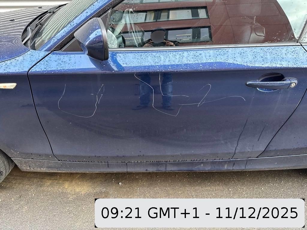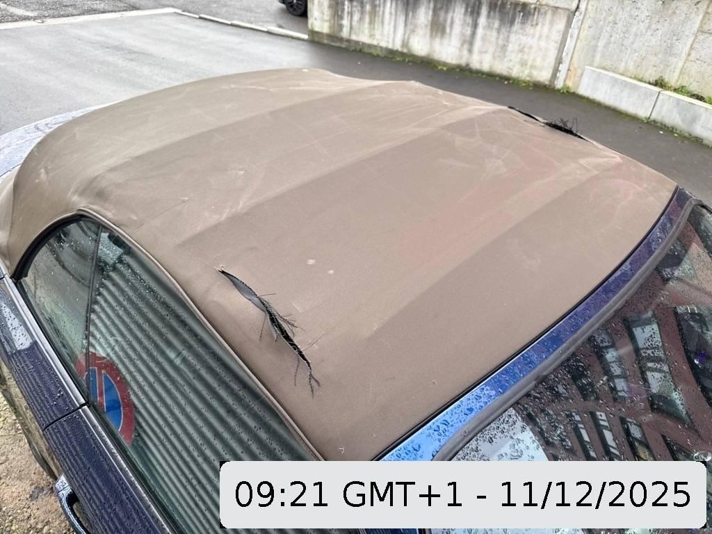 Cabrioverdeck aufgeschlitzt. Lackierung ringsherum zerkratzt und Aussenspiegel rechts beschädigt.