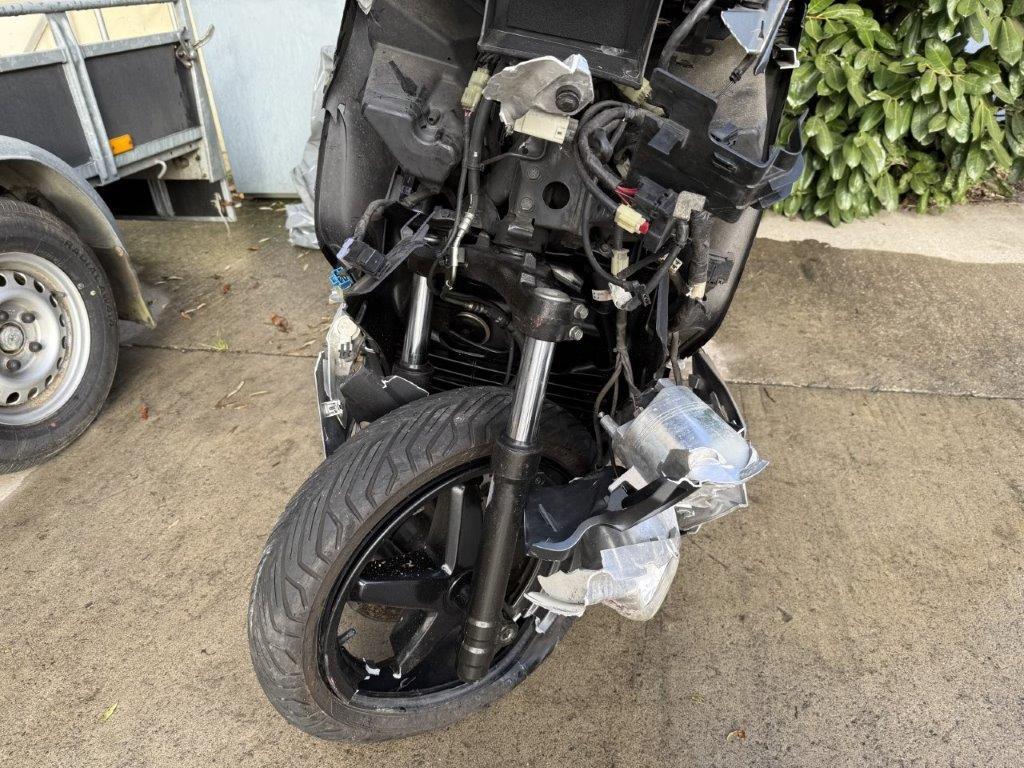 Armaturen, Auspufftopf, Aussenspiegel links, Aussenspiegel rechts, Front, Fussraster rechts, Gabelholm, Kühler, Lenkanschlag, Lenker, Lenkschloss, Rad vorne, Rahmen, Scheinwerfer, Schutzblech vorne, Seite links, Seite rechts, Verschalungen links, Verschalungen rechts, Verschalungen vorne, Windschutzscheibe