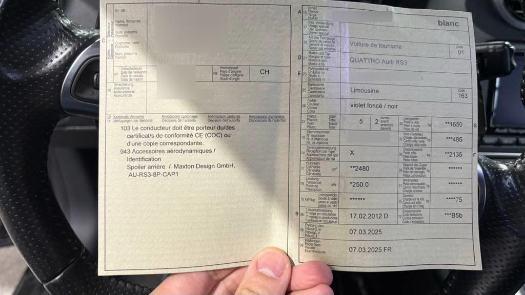 Türgriffe aussen in Wagenfarbe, Sitze: Sportsitze vorne, Scheinwerfer-Waschanlage, Seitenairbag für Fahrer und Beifahrer, Antriebsschlupfregelung (ASR), Bremssättel schwarz lackiert, Multifunktions-Sportlenkrad in Leder, unten abgeflacht Tiptronic, Aussentemperaturanzeige, Befestigungsösen im Laderaum, Höhenverstellbare Gurten vorne, Innenlicht-Abschaltverzögerung, S line Dachkantenspoiler, Aschenbecher und Zigarettenanzünder, Katalysator geregelt, Innenspiegel automatisch abblendbar, Drehzahlmesser, Airbag: Window-Kopfairbags, Assist: Berganfahrassistent, Zentralverriegelung mit Fernbedienung, Stossstangen in Wagenfarbe, Fahrwerk: Sportfahrwerk, Elektrische Fensterheber vorne + hinten, Diebstahlwarnanlage mit Innenraum- überwachung und Abschleppschutz, Servotronic, Airbag: Airbag Fahrer und Beifahrer, Einstiegsschienen, Wegfahrsperre elektronisch, Licht: Nebelschlussleuchte, Blinker in Aussenspiegel, Scheibenwaschdüsen beheizt, Lederausstattung Feinnappa, Wagenheber, Getönte Scheiben, Tempomat, Aussenspiegel in Alu matt, Klima: Klimatisierungsautomatik, Lichtwarnsummer, Heckscheibenheizung, Mittelarmlehne vorne, einteilig Ablagefach, Allradantrieb permanent, Licht: Drittes Bremslicht, Sonnenschutzrollo für Heckscheibe, 3 Kopfstützen hinten, Heckscheiben-Wisch-/Waschanlage mit, Alu-Räder 19J, 5-Arm-Rotor Design Titanoptik, Park Distance Control hinten, Tageskilometerzähler, Beide Make up-Spiegel beleuchtet, Seitenaufprall-Schutzsystem, Bi-Xenon-Scheinwerfer mit Tagfahrlicht in LED-Technik, inkl. Scheinwerferwasch- anlage, Antiblockiersystem (ABS), Sitze: Vordersitze heizbar, Gurtstraffer vorne, Beleuchtetes Handschuhfach, Klima: Pollenfilter (Staubfilter), Wartungsintervall-Anzeige, Fahrer-Informationssystem, Elektronische Differentialsperre (EDS), Laderaumabdeckung, Garantie: 2 Jahre ohne Kilometerbegrenzung (ab 1. Inv.), Dachhimmel schwarz, Teppichfussmatten vorne und hinten, Mittelkonsole mit Klavierlack, Rücksitzlehne geteilt abklappbar, Radio Concert, 3-Punkt-Sicherheitsgurte auf allen Plätzen, Lackierung: Uni-Lackierung, Scheibenwischer vorne mit Intervall, Sequentielles 7-Gang-Getriebe mit Automatikfunktion, ISOFIX Kindersitzvorrichtung, Aussenspiegel rechts und links beheizt und elektrisch verstellbar, asphärisch gewölbtes Spiegelglas, Kreuzstützen für Vordersitze elektrisch verstellbar