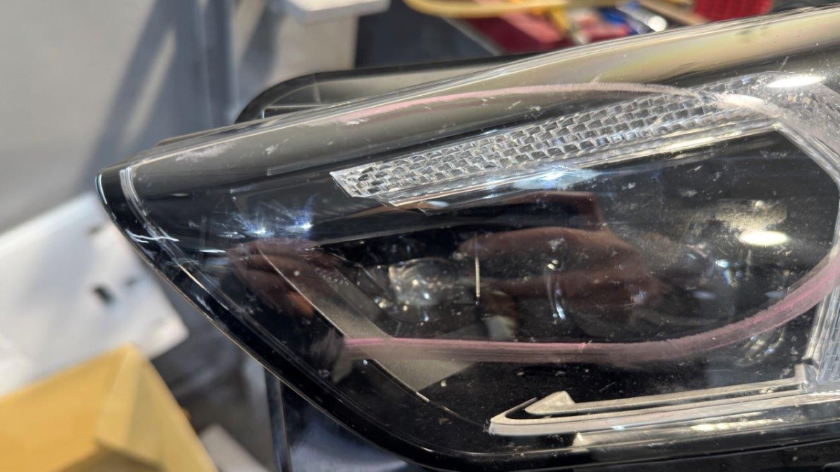 Der Scheinwerfer weist leichte Kratzer im Inneren auf
