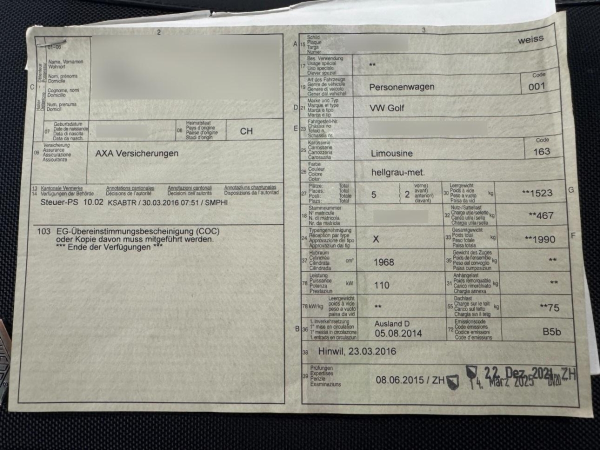 Die (vom Fahrzeugexperten) ermittelten Reparaturkosten beziehen sich auf das versicherte Ereignis. Allfällige zusätzliche, nicht versicherte Schäden/Vorschäden, sind in den Reparaturkosten nicht enthalten. Die deklarierten Ausstattungsmerkmale können von der effektiven Ausstattung abweichen.