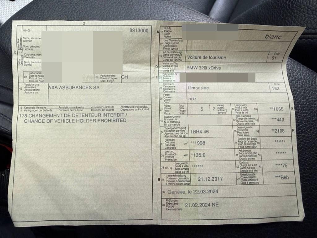Lenkrad: Multifunktionslenkrad, DAB+ (Digital Audio Broadcasting), Klimatisierungsautomatik, Lenkrad: Lenkrad längs- und höhenverstellbar, Dynamische Stabilitätskontrolle (DSC), Bordcomputer, Regensensor für Scheibenwischer vorne, Blinker in Aussenspiegel, Airbag: Airbag Fahrer und Beifahrer, BMW Individual Dachhimmel Anthrazit, Servotronic, LED Nebelscheinwerfer, Wärmeschutzverglasung, Vordersitze mechanisch längsverstellbar, Freisprecheinrichtung Bluetooth mit USB-Anschluss, Pollenfilter (Staubfilter), Leuchtweitenregulierung elektrisch, Antiblockiersystem (ABS), Auto Start-/Stop-Anlage, Sportsitze vorne, inkl. Sitzhöhen- verstellung, M-Lederlenkrad, Aktive Kopfstützen, Vordersitze höhenverstellbar, Kindersicherung hinten, Wegfahrsperre elektronisch, Kopfstützen hinten abklappbar, Radio BMW Professional, Reifenkontrollanzeige, Durchladesystem, Elektronische Differentialsperre, Einstiegsschienen mit Logo, Licht: Heckleuchten in LED-Technik – einteilige LED-Heckleuchten mit Rauchglas Komponenten – Heckleuchte mit Schlusslicht, Bremslicht, Fahrtrichtungsanzeiger (LED-Technologie), Interieurleisten Aluminium Hexagon mit Akzentleisten Blau matt, Schlüsselloser Motorstart, Elektrische Fensterheber vorne + hinten, Steckdose 12V, Scheibenwaschdüsen beheizt, Katalysator geregelt, Window-Kopfairbags, Licht: Nebelschlussleuchte, Veloursfussmatten vorne und hinten, 8-Stufen-Automat sequentiell, Allradantrieb permanent, Mittelarmlehne vorne, Airbag: Airbag Beifahrer deaktivierbar, Sonnenblende Fahrer und Beifahrerseite mit Spiegel, Warndreieck, Start-/Stop-Knopf, Lenksäule in Höhe und Tiefe einstellbar, Kopfstützen hinten, Radiovorbereitung, Antenne, Entstörung und 6 LS, Airbag: Seitenairbag für Fahrer und Beifahrer, Räder: Reifendruck-Kontrollanzeige, Abschliessbare Radschrauben, Reifenreparatur-Set (Tire Fit), ISOFIX Kindersitzvorrichtung, TeleService, Verbandskasten, Assist: Crash-Sensor, Check-Control-System, Armauflage vorne, verschiebbar, Aussenspiegel rechts und links beheizt und elektrisch verstellbar, asphärisch gewölbtes Spiegelglas, Lichtpaket, Türgriffe in Wagenfarbe, M Leichtmetallräder Sternspeiche 400 M, 18J mit Mischbereifung, Intelligenter Notruf, Zentralverriegelung mit Fernbedienung, Drittes Bremslicht, Dynamische Bremsleuchten, Bremsbelag-Verschleissanzeige, Shadow Line glänzend, Combiné d’instruments avec dotation élargies, ConnectedDrive Services, Equipement en cuir Dakota, Lecteur CD, Lumière: Projecteurs LED, M Châssis sportif, Paquet aerodynamique M