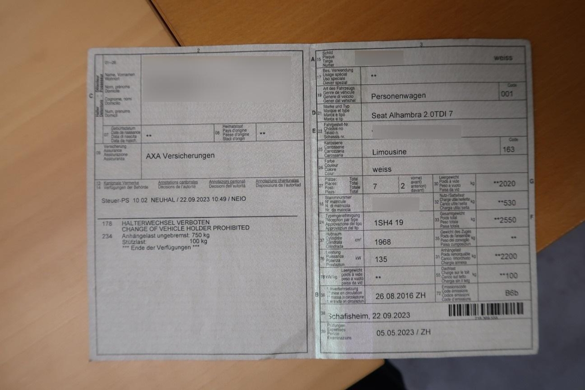 Fahrzeugausweis Vorhanden