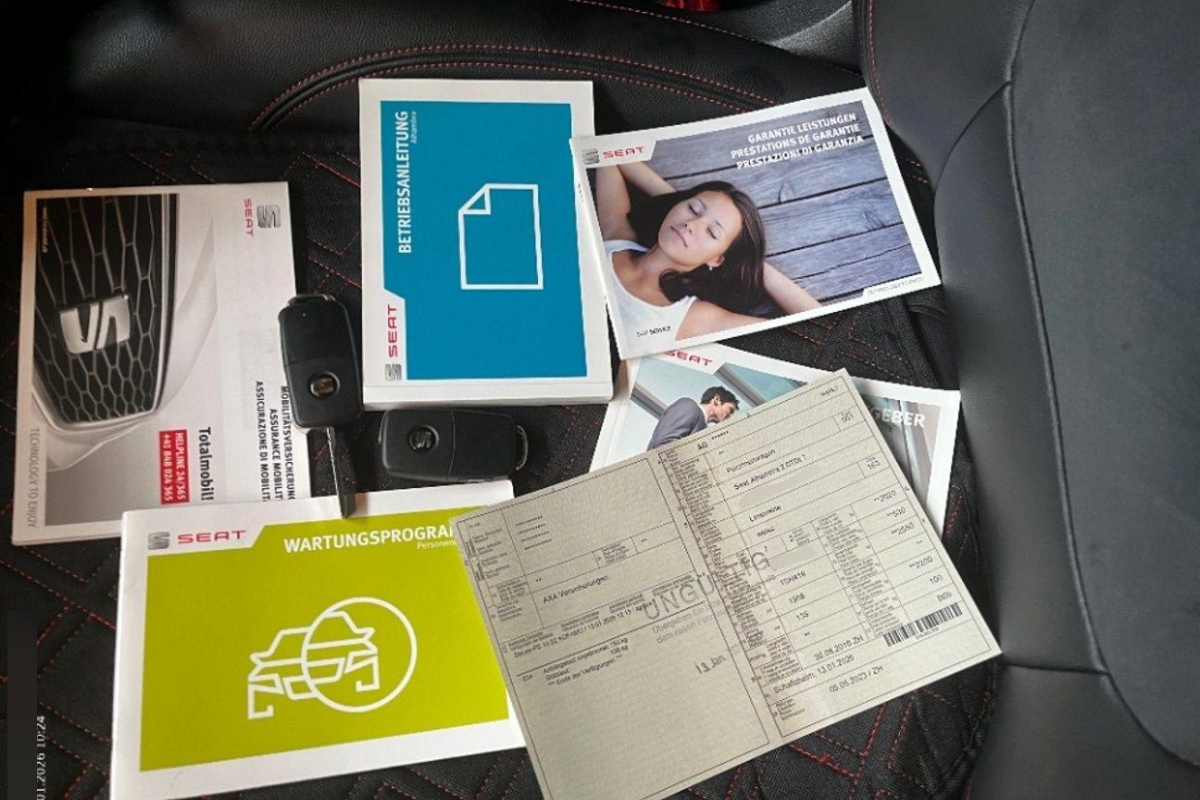 Technikpaket I (Absenkung Beifahrerspiegel bei Rückwärtsfahrt, Assist: Automatische Parkbremse, Steckdose 220/230V), Transport Paket (Sicherungsnetz für Ladegut, Sicherheitstrennnetz oder /-gitter im Gepäckraum, Schienensystem im Laderaum), Lackierung: Uni-Lackierung Pure White, Media: SEAT FullLink, Anhängervorrichtung (Einklappbar), Sitze: Fahrersitz mit Massagefunktion, Airbag: Seitenairbags hinten, Panorama-Schiebedach, SEAT Garantie: Garantie 3. und 4 Jahre oder 80’000 km (ab 1. Inv.)