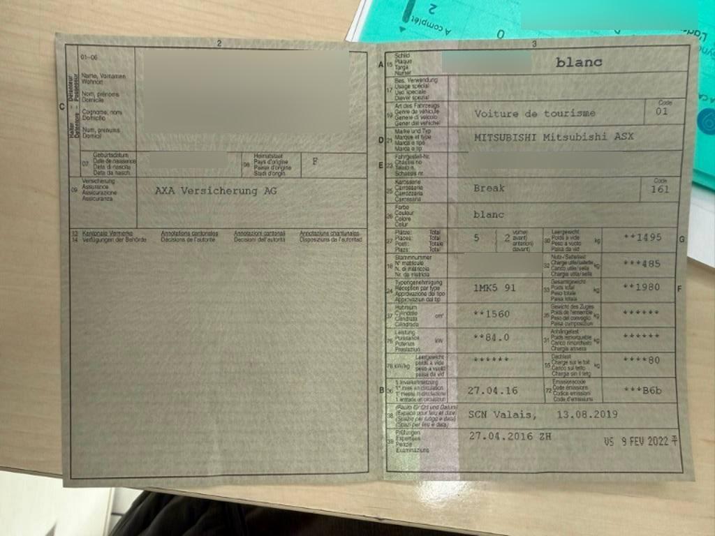 Fahrzeugausweis Vorhanden
