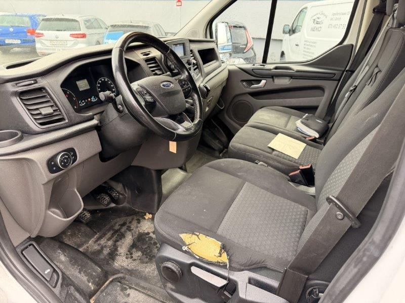 Partikelfilter und Oxydationskatalysator, Sonnenblende rechts, Ablagefach im Dachbereich, Airbag: Airbag Fahrerseite, Sonnenblende links, Handschuhfach mit Deckel, Räder: Reserverad, Seitenschutzleisten schwarz, ABS ESP, Traktionskontrolle, Berganfahrhilfe, Überschlagschutz, Notbremsassistent, Doppelbatterie (bis -29°C), Innenraumbeleuchtung, 1 Fahrzeugschlüssel mit Fernbedienung (aufladbar) und 1 normaler Schlüssel, Türen: Zusätzliche Deadlocks an Fahrer- und Beifahrertür, Spiegelkappen aus Kunststoff in schwarz, Media: Audio 13 – Radio DAB+, 1 USB, Bluetooth, Lenkradbedienung, 4 Lautsprecher, MyFord-Dock, Haltegriff für Fahrer- und Beifahrer, Türen: Schiebetüre rechts, Kühlergrill schwarz, Tiefdach, Heizung vorne, Kotschutzlappen vorne und hinten, Licht: Halogen Scheinwerfer inkl. Tagfahrlicht, Wärmeschutzverglasung komplett, leicht getönt, Lackierung: Uni-Lackierung, Bordwerkzeug, Elektrische Fensterheber vorne, 8 Verzurrösen hinten (DIN), Paket: Sitz-Paket 4 (Beifahrerdoppelsitz), Extra Heavy Duty Alternator 240A, Trennwand mit Durchladeluke, Gurtstraffer vorne, Easy Fuel, Bodenfläche Gummi, komplett, Getriebe: 6-Gang-Getriebe, Türen: Heckdoppelflügeltüren 180° (ohne Fenster), Frontstossstange teillackiert, Stossstangen hinten schwarz, Aussenspiegel manuell verstellbar mit integrierten Blinkleuchten, Räder: Radnabenabdeckung, Räder: Stahlräder 6.5×15 215/65 R15C Reifen, MyFord Dock – oberhalb Armaturenträger, zur Befestigung von z.B. Smartphones., Dachhimmel Kabine aus Stoff