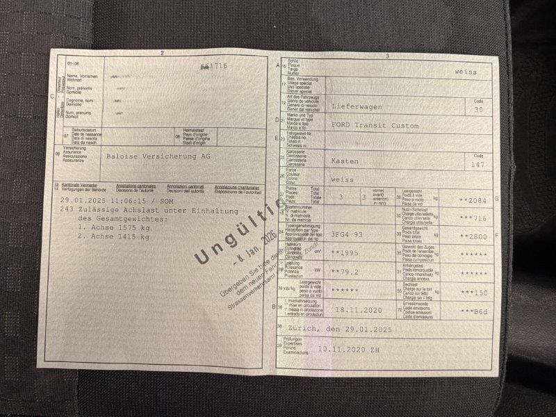 Fahrzeugausweis Vorhanden