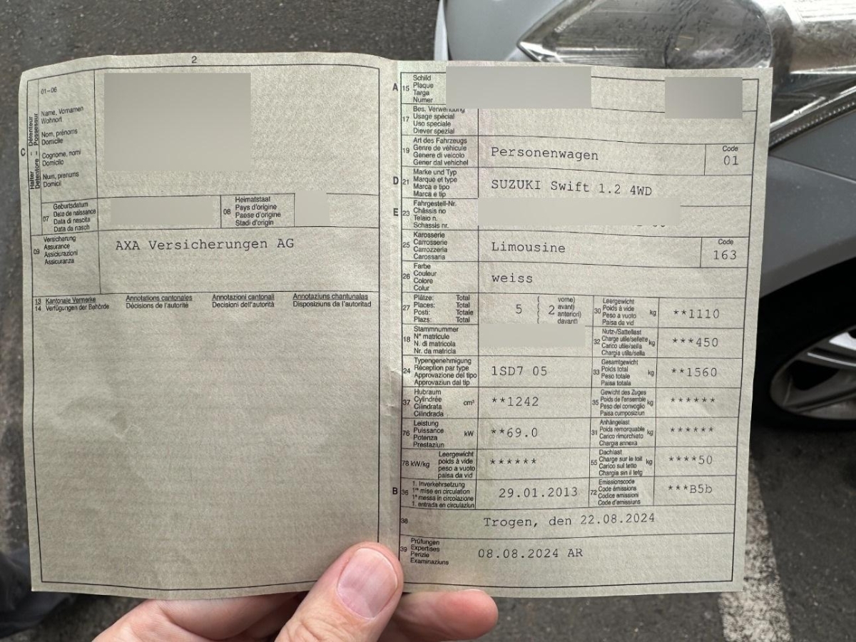 | Fahrzeugausweis | Vorhanden |