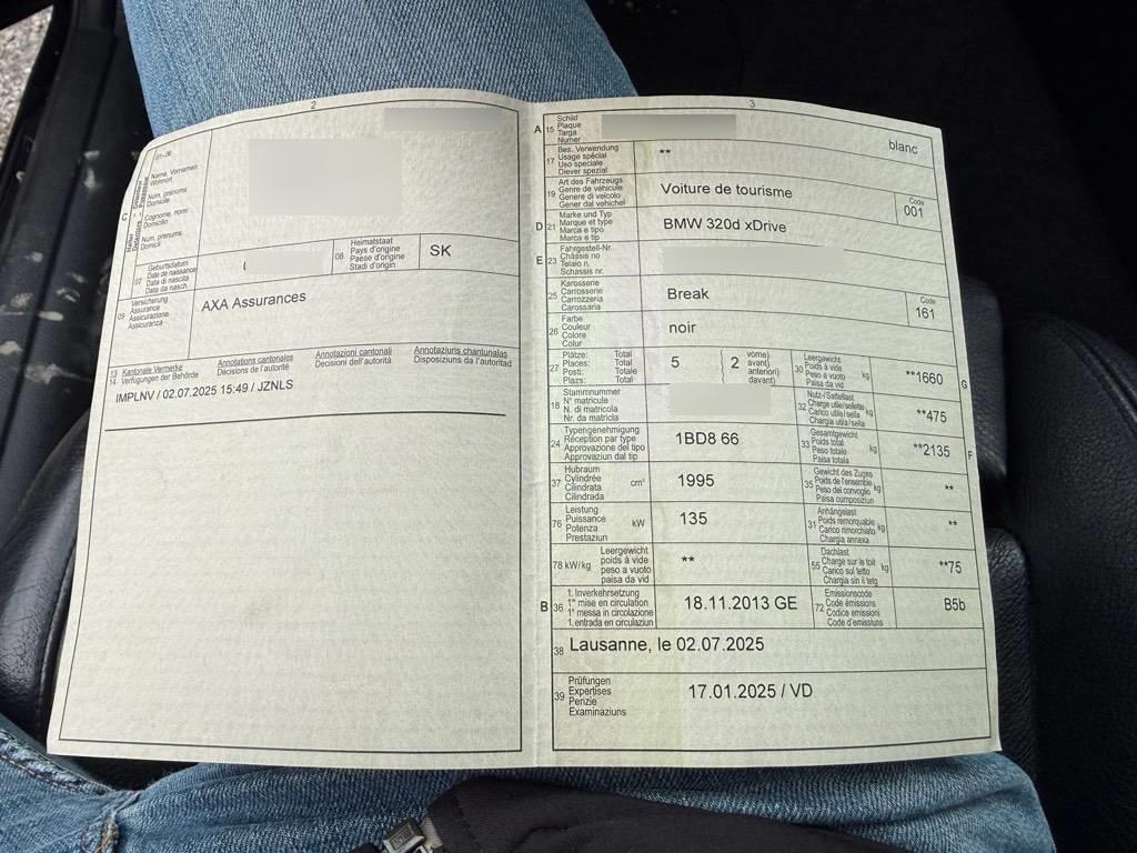 Sonnenblende links, Automatische Stabilitäts- und Traktions- kontrolle, Licht: Nebelschlussleuchte, Drittes Bremslicht, Durchladesystem, Aussenspiegel rechts und links beheizt und elektrisch verstellbar, asphärisch gewölbtes Spiegelglas, Schlüsselloser Motorstart, Nebelscheinwerfer, Dynamische Stabilitätskontrolle (DSC), Licht: Heckleuchten in LED-Technik – einteilige LED-Heckleuchten mit Rauchglas Komponenten – Heckleuchte mit Schlusslicht, Bremslicht, Fahrtrichtungsanzeiger (LED-Technologie), Bordcomputer, BMW Mobility System, Sonnenblende rechts, Assist: Crash-Sensor, Start-/Stop-Knopf, Airbag: Airbag Fahrer und Beifahrer, Bremsassistent (BAS), Dynamische Bremsleuchten, Vordersitze mechanisch längsverstellbar, Mittelarmlehne vorne, Kopfstützen hinten, Auto Start-/Stop-Anlage, Automatische Heckklappenbetätigung, Airbag: Seitenairbag für Fahrer und Beifahrer, Allradantrieb permanent, Türgriffe in Wagenfarbe, Vordersitze höhenverstellbar, Steckdose 12V, Intelligenter Notruf, Window-Kopfairbags, TeleService, Elektrische Fensterheber vorne + hinten, Antiblockiersystem (ABS), Befestigungsösen im Laderaum, Stoff-/Move-Ausstattung, Leuchtweitenregulierung elektrisch, Bremsenergie-Rückgewinnung, Wegfahrsperre elektronisch, Windschutzscheibe aus Verbundglas, Airbag: Airbag Beifahrer deaktivierbar, Rücksitzlehne geteilt abklappbar, Lenkung, elektrisch unterstützt, 8-Stufen-Automat sequentiell, Partikelfilter und Oxydationskatalysator, Radiovorbereitung, Antenne, Entstörung und 6 LS, Bremsbelag-Verschleissanzeige, Abschliessbare Radschrauben, Lederlenkrad, Assist: Cornering Brake Control (CBC), Weisse Blinkleuchten, Elektronische Differentialsperre, Leichtmetallfelgen im V-Speichen-Design 390, 16J, Klima: Klimaautomatik, Lenkrad: Lenkrad längs- und höhenverstellbar, ISOFIX Kindersitzvorrichtung, Anfahrassistent, Zusätzliche 12V Steckdosen, Veloursfussmatten vorne und hinten, Aux-In Anschluss, Steckdose im Kofferraum, Radio BMW Professional, Lenkrad: Multifunktionslenkrad, Dekor: Interieurleisten in Satinsilber matt, Verbandskasten, Aufklappbare Heckscheibe, Einstiegsschienen mit Logo, Blinker in Aussenspiegel, Elektrische Lenkung (EPS), Nichtraucherausführung, Aktive Kopfstützen