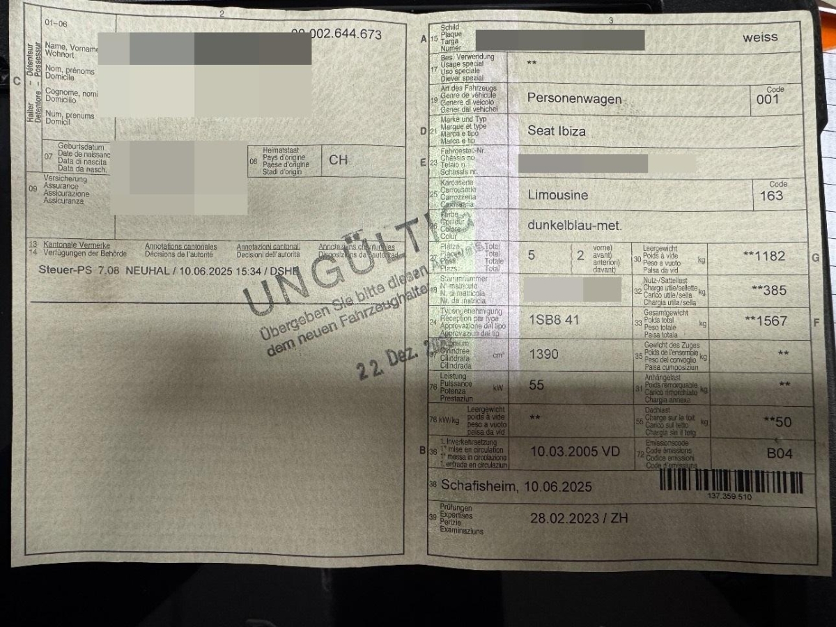 Das Fahrzeug hat rundum kleine Dellen, Beulen und Lackschäden, Diverse Gebrauchsspuren, Motor und Getriebe mit Risiko, konnten nicht geprüft werden, Stosstange vorne