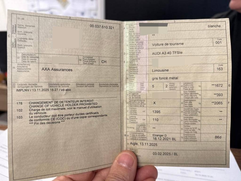 Elektronisches Stabilitäts-Programm (ESP), Elektrische Kindersicherung, Heckscheiben-Wisch-/Waschanlage, Licht: Drittes Bremslicht, Mittelarmlehne vorn in Kunstleder schwarz mit Kontrastnaht in Rot, Airbag: Airbag Beifahrer deaktivierbar, Kofferraumbodenmatte, Einstiegsschienen verchromt, Airbag: Seitenairbags vorn, mit Kopfairbag und Interaktionsairbag vorn, Elektronische Parkbremse, Lenkrad: Lenkrad mit Schaltwippen, Polster: Stoff-Ausstattung Index, Aussenspiegel in Wagenfarbe, Kopfstützen hinten, Media: Vorbereitung für Audi Smartphone Interface, Fahrwerk: Serienfahrwerk, Steckdose 12V, Innenspiegel abblendbar, Bordwerkzeug, 3-Punkt-Sicherheitsgurte auf allen Plätzen, Bordcomputer, Media: Vorbereitung für Audi connect plus Dienste, Zentralverriegelung mit Fernbedienung, Heckscheibe, hintere Tür- und Seitenscheiben in Klarglas, Katalysator geregelt, Heckscheibenheizung, Haushaltsstecker Typ J (CH) Netzanschlusskabel mit Haushaltsstecker Typ J für das e-tron Ladesystem kompakt, Media: Digitaler Radioempfang (DAB), Räder: Reifenreparatur-Set (Tire Fit), Licht: Nebelschlussleuchte, Wegfahrsperre elektronisch, Vorbereitung für Verkehrszeichenerkennung, Assist: Einparkhilfe hinten, Wärmeschutzverglasung, Getriebe: 7-Gang- Automat S tronic, Dachhimmel, Antiblockiersystem (ABS), Teppichfussmatten vorne und hinten, Garantie: 2 Jahre ohne Kilometerbegrenzung (ab 1. Inv.), Modellbezeichnungen (Logo & Model), Ladekabel Mode 3 für öffentliches Laden 11 kW, Schalt- / Wählhebel, Stopp-/Start-System, Speed-Limiter mit Vorbereitung für Adaptiver Geschwindigkeitsassistent, Airbag: Window-Kopfairbags, Geschwindigkeitsbegrenzer, Airbag: Airbag Fahrer und Beifahrer, Dekor: Dekoreinlagen Seideneffektlack platinumgrau, Licht: LED Scheinwerfer, Sitze: Rücksitzlehne abklappbar, Sitze: Rücksitze geteilt abklappbar, Media: Bluetooth-Schnittstelle, Industriestecker CEE 16A, 400V, lang und gerade für das e-tron Ladesystem, Innenraumbeleuchtung, Nichtraucherausführung, Licht: Licht- und Regensensor, Räder: Leichtmetallräder, 5-Arm, 8,0Jx17 – Reifen 225/45 R17 91Y, Drehzahlmesser, Assist: Spurverlassenswarnung, Media: Audi connect Notruf & Service mit Audi connect Remote & Control, Media: 6 Lautsprecher, Aussenspiegel rechts und links beheizbar und elektrisch verstellbar, Verbandmaterial und Warndreieck, Servotronic, Licht: Tagfahrlicht, Kopfstützen vorne höhenverstellbar, Räder: Reifendruck-Kontrollanzeige, Kühlergrilleinfassungen, Gurtkontrolle, Zierleisten schwarz, Media: MMI Radio plus, Sitze: Vordersitze manuell verstellbar, Audi pre sense front, S-Dachkantenspoiler