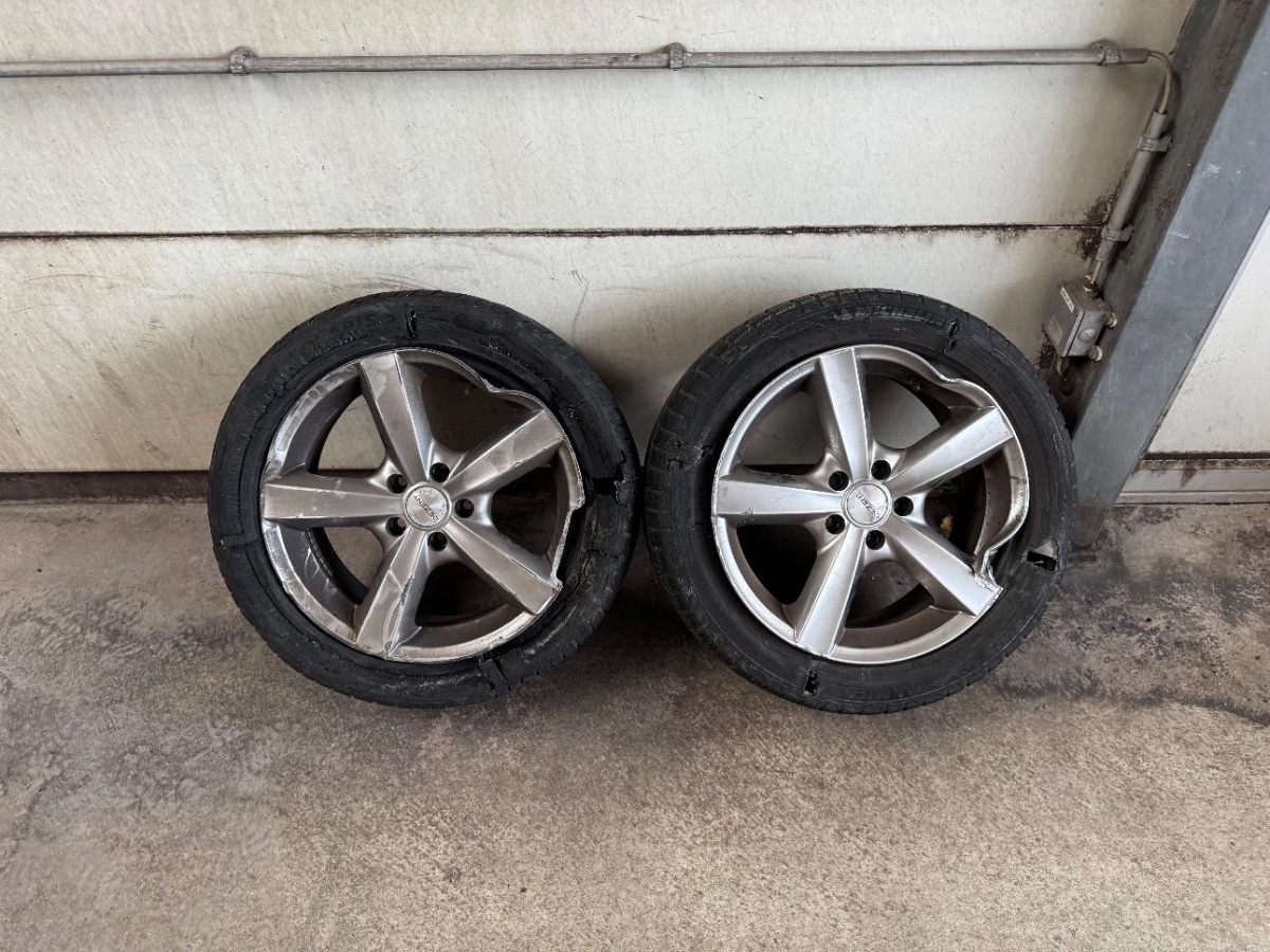 Die Felge vorne rechts und hinten rechts am Fahrzeug montiert, gehört nicht zum Fahrzeug