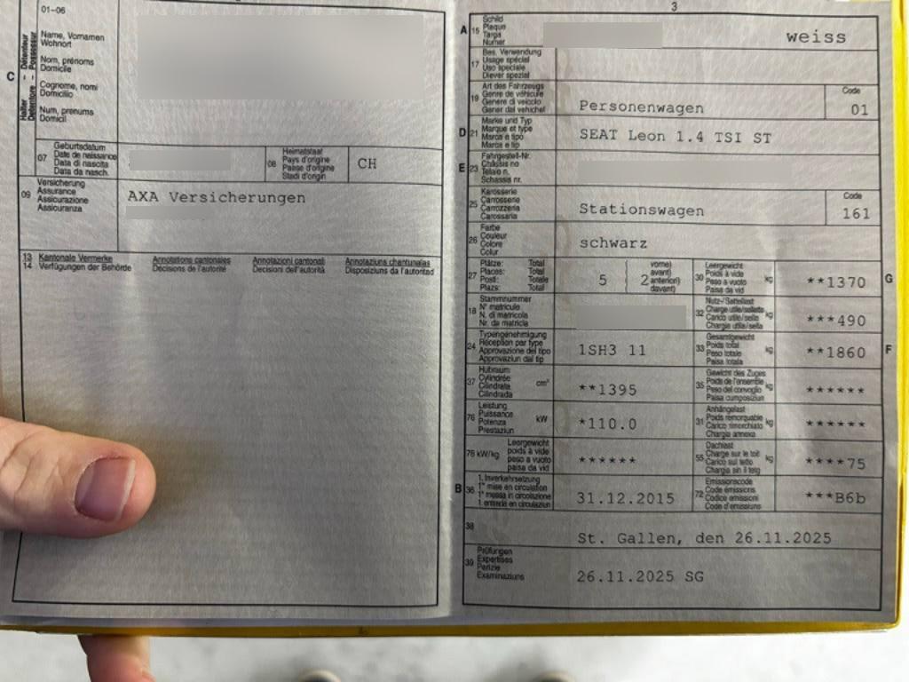 Handschuhfach Beleuchtet, Lenkrad: Ledermultifunktionslenkrad, Sitze: Rücksitzlehne geteilt abklappbar 1/3 – 2/3, Gurtstraffer mit Gurtkraftbegrenzer vorne, Auspuffanlage mit 2 Endrohren, Elektronisches Stabilitäts-Programm (ESP) mit Reifendruckkontrolle, Bremsassistent (BAS) und Sperrdifferential, Airbag: Fahrer und Beifahrer Airbag, Einstiegsleisten in Aluminium, Sitze: Ablagebox unter Fahrer-und Beifahrersitz, Motor Start-/Stop-Anlage, Fahrwerk: Sportfahrwerk, Airbag: Window-Kopfairbags vorne und hinten, Assist: Einparkhilfe vorne und hinten mit optischer Anzeige, Innenspiegel automatisch abblendbar, Räder: 4 Leichtmetallfelgen 17J mit Pneu, XDS inkl. Berganfahrassistent, Sitze: Vordersitze höhenverstellbar, Reifenpannen-Set (Tire Kit), Getriebe: 7-Gang-Sequentielle-Getriebe mit Automatikfunktion, Sitze: Mittelarmlehne vorne, Bordcomputer, Sportsitze vorne mit Lendenwirbelstütze, Seitenaufprall-Schutzsystem, Media: Mobiltelefon Freisprecheinrichtung Bluetooth, Teppichfussmatten vorne und hinten, Licht: LED Heckleuchten, Sonnenblende Fahrer und Beifahrerseite mit beleuchtetem Spiegel, Licht- und Regensensor, Media: Navigationsystem Seat Media System, Katalysator geregelt, Kopfstützen vorne höhenverstellbar, Schalthebelknauf in Leder, Doppelscheinwerfer, Airbag: Knie-Airbag für Fahrer, Media: DAB+ (Digital Audio Broadcasting), Sitzbezüge in Alcantara, Heckscheiben-Wisch-Waschanlage mit Intervall, Gurte Höhenverstellbar vorne, Licht: LED Scheinwerfer, Licht: Halogenscheinwerfer, Klima: 2-Zonen-Klimaautomatik, 3-Punkt-Sicherheitsgurte auf allen Plätzen, Assist: Berganfahrhilfe (Hill Holder), Elektrische Fensterheber vorne und hinten mit Komfortbetätigung und Einklemmschutz, Zentralverriegelung mit Fernbedienung, Touchscreen, Lackierung: Uni-Lackierung, Mittelkonsole mit Ablagefach, Leuchtweitenregulierung von innen, Kindersitzvorrichtung ISOFIX Beifahrerseite, ABS, EBD elektronische Bremskraftverteilung, Lenkrad längs- und höhenverstellbar, Assist: Tempomat, Airbag: Beifahrerairbag deaktivierbar, Aussenspiegel mit LED Blinker, Media: Radio/CD-Player mit MP3, Airbag: Seitenairbag für Fahrer und Beifahrer, Gurtstraffer vorne, Gurtkontrolle, Elektronische Traktionskontrolle (ASR/TCS), Kofferraumbeleuchtung, 12-Volt-Steckdose vorne, Abgedunkeltes Scheibenglas (ab B-Säule), Cupholder vorne, Media: Lautsprecher 8, Aussentemperaturanzeige, Wärmeschutzverglasung, Kofferaumnetz, Licht: Tagfahrlicht, Kopfstützen hinten (3), Aussenspiegel rechts und links beheizt, elektrisch verstell-/ und einklappbar, Licht: Coming-home-Funktion, Ambientes Licht, USB-Anschluss, Seitenschutz-Zierleisten, Licht: Nebelscheinwerfer mit Cornering-Funktion, Servolenkung, Wegfahrsperre elektronisch, Dachreling silber, Aussenspiegel und Türgriffe in Wagenfarbe