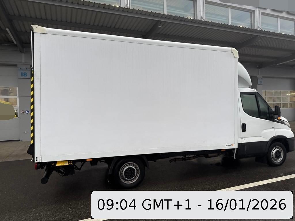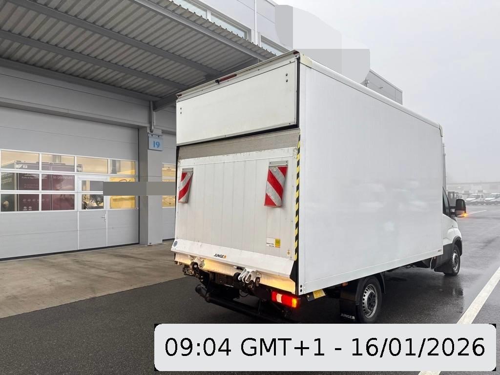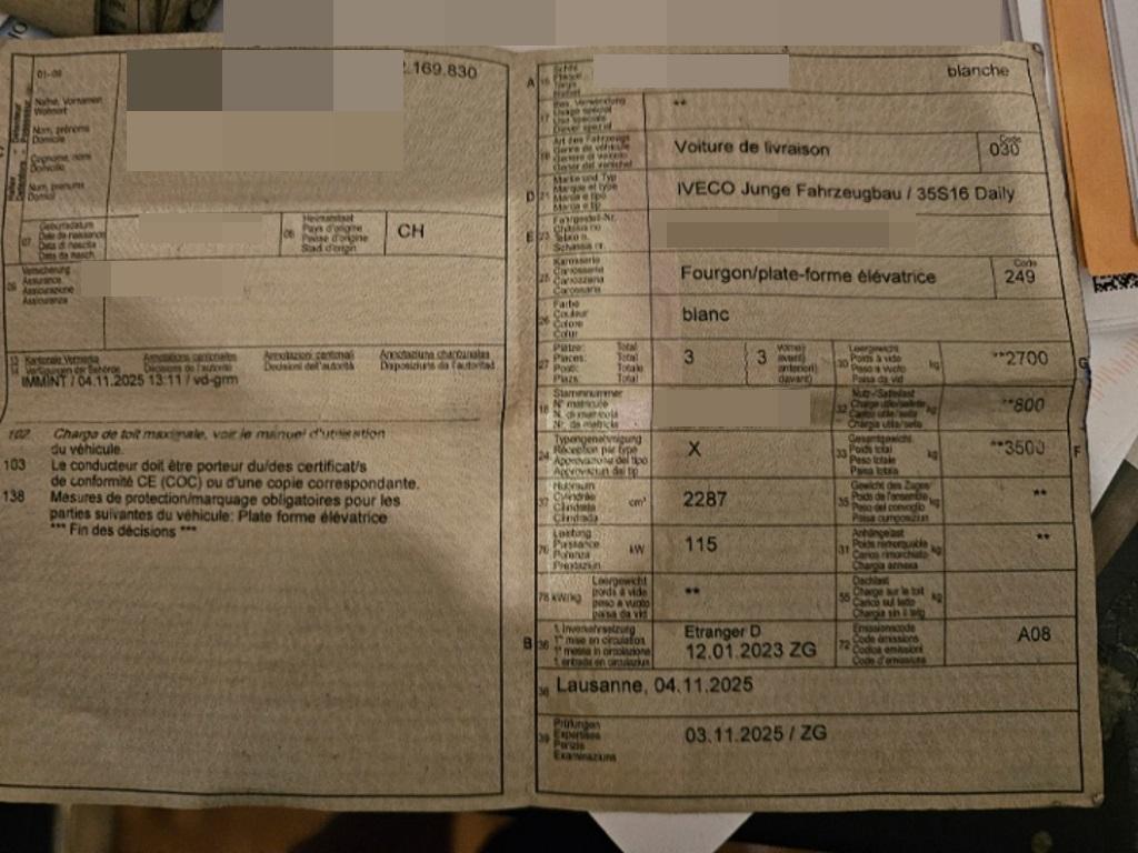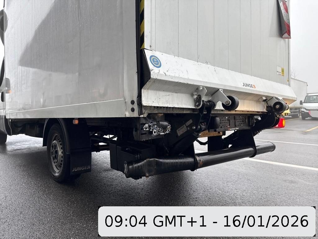 Tachometer mit Trip-Computer, Licht: Laderaumbeleuchtung über Heck- und Schiebetür mit Türkontakten, Assist: Rückfahrwarner akustisch, Fahrwerk: 2-Kreis-Hydraulikbremsen mit Bremskraftverstärker, Spritzschutzlappen an der Vorder- und Hinterachse, Sitze: Beifahrerdoppelsitzbank mit Staufach, Elektrik für Anhängersteckdose, Licht: Scheinwerfer Halogen, Räder: Stahlräder 16J, Assist: Elektronisches Stabilitäts Programm (ESP) adaptiv, – Anfahrassistent (AAS), – Anti-Blockier-System (ABS), – Anti-Schlupfregelung (ASR), – elektronischer Bremskraft-Verteilung (EBV), – hydraulischem Bremsassistent (HBA), – Motor-Schleppmoment-Regelung (MSR), – Roll Movement Intervention (RMI), – Roll Over Mitigation (ROM), – Anhängerstabilisierung (TSM), Licht: Leuchtweitenregulierung, Licht: Follow-Me-Home Funktion, Kontrollleuchten für Warnblinkanlage, Fahrtrichtungsanzeiger mit Komfortblinken, Öldruck, Ölstand, Batterie, Stand-, Abblend- und Fernlicht, Getönte Windschutzscheibe aus Verbundglas, Sitze: Fahrersitz mit Kopfstütze, in Höhe, Neigung und Längsrichtung verstellbar, Digital Uhr, Lenkstockhebel für – Stand-, Abblend- und Fernlicht, Signalhorn, Fahrtrichtungsanzeiger, Nebelschlussleuchte – Scheibenwisch-/ -waschanlage, Vorbereitung Anhängersteckdose, Warnleuchte, Klima: Wahlweise Umluft oder Frischluft, Servolenkung, Rückspiegel mit sphärischem Spiegelglas, Weitwinkelspiegel, Blinker integriert, Fahrwerk: Hydraulische Stossdämpfer an der Vorder- und Hinterachse, Fahrwerk: Stabilisator an der Vorderachse, Elektrische Fensterheber vorne, Airbag: Airbag mit Gurtstraffer auf Fahrerseite, Bordwerkzeug, Klima: 4-stufiges, geräuscharmes Gebläse, Fahrwerk: Stabilisator an der Hinterachse, Zentralverriegelung mit Fernbedienung getrennt für Fahrerhaus und Laderaum, Kraftstoffvorrats- und Kühlwassertemperaturanzeige, Fahrwerk: Anbaumöglichkeit für Nebenabtrieb, Getriebe: 8-Stufen-Automat, Wegfahrsperre elektronisch, Sitze: 3-Punkt-Automatik-Sicherheitsgurte für Fahrer und Beifahrer, höhenverstellbar, Armaturenbrett mit integriertem Ganghebel, Bordcomputer mit umfangreichen Funktionen, Drehzahlmesser, Sitze: Mittelsitz der Beifahrersitzbank mit 3-Punkt Automatik Sicherheitsgurt, 2 DIN-Einbauschächte für Autoradio und EG-Kontrollgerät, Mehrstufige Scheibenwischanlage mit 2 Wischern, Türen: Zentralverriegelung mit Fernbedienung, CAN – Datenbus Architektur im gesamten Fahrzeug, Licht: Seitenmarkierungsleuchten, Sitze: Beifahrersitz mit Dreipunktgurt auf dem Mittelsitz, Lackierung: Uni Lackierung, Kleiderhaken, Ablagen mit Flaschenhalter in den Türtaschen, Fahrwerk: Unterbodenschutz, Intervallschaltung, Wagenheber, Klima: Scheibenbelüftung mit Warm- oder Kaltluft, Sitze: Sitzbezüge aus atmungsaktivem Textil, Media: Radiovorbereitung mit 4 Lautsprechern und Verkabelung, Warndreieck, Licht: Tagfahrlicht, Teilverzinkte Karosserie, Kurzhaubenfahrerhaus in aerodynamischem Design mit getönten Scheiben, Licht: Parklichtsteuerung, Unterlegkeile, Rückspiegel elektrisch verstell und heizbar, Verbandskasten, Geschwindigkeitsbegrenzer 160 km/h, Eco-Smart-Generator 12 V / 220 A, Licht: Kabinenbeleuchtung und zusätzliches Spot-Light, Elektrische Scheibenwaschpumpe mit Mehrfachdüsen an den Wischerarmen, Wartungsanzeige, Fahrwerk: Leiterrahmen aus durchgehenden C-Längsträgern mit Querträgern, TFT-Farb-Display, Klima: Thermostatgeregelte Frischluft-Warmwasserheizung, Fahrwerk: Scheibenbremsen an der Vorder- und Hinterachse, Partikelfilter und Oxydationskatalysator, Ablage- und Dokumentenfach, bei Klimaanlage gekühlt