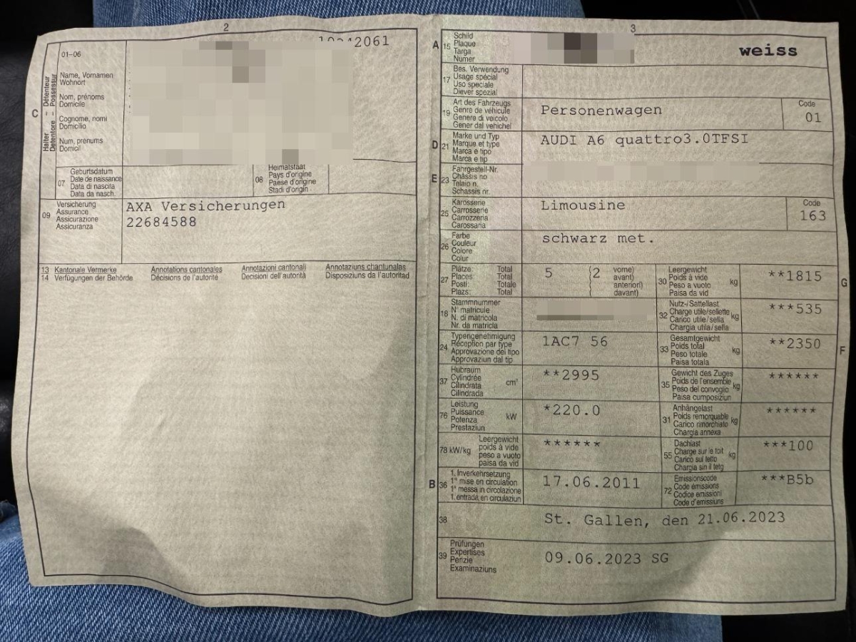 Sitze: Vordersitze heizbar, Nebelscheinwerfer, Aussentemperaturanzeige, Start-/Stop-Knopf, Aussenspiegel rechts und links beheizt und elektrisch verstellbar, asphärisch gewölbtes Spiegelglas, Audi drive select, Ablagen in den Türen, Kartentaschen an den Rückenlehnen, Ausstiegsleuchten in den Türen vorn, Tageskilometerzähler, Digital Uhr, Instrumentenbeleuchtung, regelbar, Antriebsschlupfregelung (ASR), Drehzahlmesser, Elektronisches Stabilitäts-Programm (ESP), Lichtsensor, Wegfahrsperre elektronisch, 3-Punkt-Sicherheitsgurte auf allen Plätzen, Steckdose im Kofferraum, Lenkrad: Lenkrad längs- und höhenverstellbar, LED Blinker im Aussenspiegel, Airbag: Airbag Fahrer und Beifahrer, Garantie: 2 Jahre ohne Kilometerbegrenzung (ab 1. Inv.), Elektronische Parkbremse, Anfahrassistent, Sicherheitslenksäule, Kindersicherung an den hinteren Türen, Sitze: Vordersitze manuell verstellbar, Beide Make up-Spiegel beleuchtet, Schublade unter Beifahrersitz, Getönte Scheiben, Stop/Start-Technologie, ABS, EBD elektronische Bremskraftverteilung, Elektrische Fensterheber vorne + hinten, Kreuzstützen für Vordersitze elektrisch verstellbar, Media: MMI Radio plus, Scheinwerfer-Waschanlage, Seitenaufprall-Schutzsystem, MMI basic, Media: Audi Sound System, Lackierung: Uni-Lackierung, Schublade unter Fahrersitz, Wassertemperaturanzeige, Licht: Halogenscheinwerfer, Wagenheber, Licht: Tagfahrlicht, Katalysator geregelt, Wartungsintervall-Anzeige, Sitzbezüge Stoff, Mittelarmlehne hinten, Cupholder vorne, Warnblinkautomatik bei Vollbremsung, Glanzpaket: Fensterschachtleisten in eloxiertem Alu, Einstiegsleisten in Alu, Innenlicht-Abschaltverzögerung, Rücksitzlehne geteilt abklappbar, Aktive Kopfstützen, Frontscheibe Verbundglas, Sitze: Vordersitze höhenverstellbar, Leseleuchten vorne, Gurtkontrolle, Leseleuchten hinten, Multifunktions-Lederlenkrad 4-Speichen, Assist: Bremsassistent (BAS), Tempomat mit Geschwindigkeitsbegrenzer, Bremsbelag-Verschleissanzeige, Klimaautomatik Komfort, Steckdose, Einstiegsschienen, Zweiklanghorn, Veloursfussmatten vorne und hinten, Notrad, Dekoreinlagen Micrometallic platin, Regensensor für Scheibenwischer vorne, Höhenverstellbare Gurten vorne, Lichtwarnsummer, Klima: Pollenfilter (Staubfilter), Aschenbecher und Zigarettenanzünder, Airbag: Window-Kopfairbags, Schalthebelknauf in Leder, Brillenablage, Alu-Räder 8Jx17 im 6-Arm-Design, Stossstangen und Aussenspiegel in Wagenfarbe, Autobahnblinkfunktion, Automatikgurt in Fondmitte, Abblendlichtausschaltverzögerung 'Follow me home’, Durchladesystem inkl.Skisack, Leuchtweitenregulierung elektrisch, Räder: Reifendruck-Kontrollanzeige, Servotronic, Sequentielles 7-Gang-Getriebe mit Automatikfunktion, Media: Bluetooth-Schnittstelle, Zentralverriegelung mit Fernbedienung, Auspuffanlage mit 2 Endrohren (links und rechts), Beleuchtetes und abschliessbares Handschuhfach, Allradantrieb permanent, Gepäckraumklappe mit automatischer Öffnung, 3 Kopfstützen hinten, Licht: Drittes Bremslicht, Licht: Nebelschlussleuchte, Adaptives Bremslicht, Audi pre sense basic, Gurtstraffer mit Gurtkraftbegrenzer, Türgriffe aussen in Wagenfarbe, Elektronische Differentialsperre (EDS), Seitenairbag für Fahrer und Beifahrer, Heckscheibenheizung, Scheibenwischer vorne mit Intervall, Mittelarmlehne vorn in Kunstleder schwarz mit Kontrastnaht in Rot