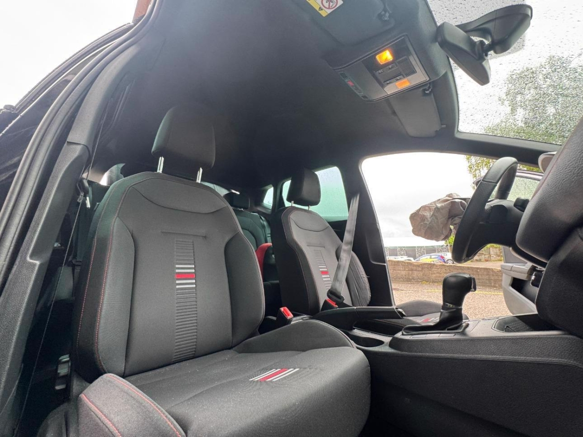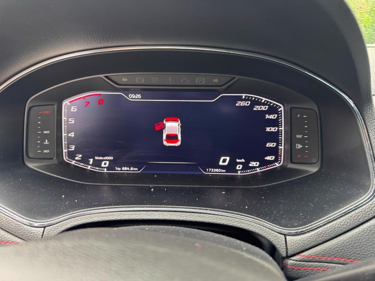 Gurtkontrolle, Klima: Climatronic, Media: Mobiltelefon Freisprecheinrichtung Bluetooth, Dekor: Dekoreinlagen „Leatherette”, Sitze: Rücksitzlehne geteilt abklappbar 1/3 – 2/3, Licht: Nebelschlussleuchte, Assist: Notbremsfunktion – City – Fussgänger, Sitze: Beifahrersitz höhenverstellbar, Tageskilometerzähler, Sitze: Mittelarmlehne vorne, Bordcomputer MEDIUM (Display monochrom), Assist: Müdigkeitserkennung, SEAT Garantie: Garantie 12 Jahre Gewährleistung gegen Karosserie-Durchrostung, Assist: Speedlimiter, Assist: Front-Assist Umfeldbeobachtung, Sitze: Sportsitze vorne, Sitze: Fahrersitz höhenverstellbar, Elektronisches Stabilitäts-Programm (ESP), Stossstangen in Wagenfarbe, Heckspoiler, Media: SEAT Media System CONNECT, Media: Lautsprecher 6, Aussenspiegel elektrisch verstellbar, Licht: LED-Tagfahrlicht, Assist: Tempomat mit Geschwindigkeitsbegrenzer, Elektronische Differentialsperre (XDS), SEAT Garantie: Garantie 3. und 4 Jahre oder 80’000 km (ab 1. Inv.), Assist: Einparkhilfe vorne und hinten mit optischer Anzeige, Airbag: Beifahrerairbag deaktivierbar, Licht- und Regensensor, Assist: Multikollisionsbremse, Ambientebeleuchtung, Katalysator geregelt, Handschuhfach, Media: 8” Farbdisplay (Touchscreen), Sitze: Vordersitze heizbar, Pollenfilter (Staubfilter), Servolenkung, Elektrische Fensterheber vorne mit Komfortbetätigung und Einklemmschutz, Zentralverriegelung mit Fernbedienung, Antiblockiersystem (ABS), Paket: „Winter Paket”, Wärmeschutzverglasung, Lenkrad längs- und höhenverstellbar, Heckscheiben-Wisch-Waschanlage mit Intervall, ISOFIX Kindersitzvorrichtung, Licht: Coming-home-Funktion, Aussenspiegel beheizbar, Scheibenwaschdüsen beheizt, Aussenspiegel elektrisch anklappbar, Assist: Berganfahrhilfe, Licht: LED-Scheinwerfer für Abblend- und Fernlicht -LED-Tagfahrlicht, -LED-Heckleuchten, -Ambiente Innenraumbeleuchtung, -Entfall Cornering-Funktion, Wassertemperaturanzeige, Lenkrad: Ledermultifunktionslenkrad, Schublade unter Beifahrersitz, Dachhimmel schwarz, Innenspiegel automatisch abblendbar, Scheibenbremsen hinten, Elektrische Fensterheber hinten, Media: DAB+ (Digital Audio Broadcasting), Licht: LED Heckleuchten, Media: Navigationssystem, Wegfahrsperre elektronisch, Räder: Reifenreparatur-Set (Tire Fit), Türgriffe aussen in Wagenfarbe, SEAT Garantie: Garantie 2 Jahre ohne Kilometerbegrenzung (ab 1. Inv.), Fahrwerk: Sportfahrwerk, Polster: Stoff, Airbag: Fahrer und Beifahrer Airbag, Aussenspiegel in Glanzschwarz, Airbag: Seitenairbag für Fahrer und Beifahrer, Licht: Bremslicht Drittes, Media: Sprachsteuerung, Abgedunkeltes Scheibenglas (ab B-Säule), Scheibenwischer vorne mit Intervall, Getriebe: 7-Gang-Sequentielle-Getriebe mit Automatikfunktion, Höheneinstellbare 3-Punkt-Sicherheitsgurte mit Gurtstraffer vorne, Lenkrad: Lenkrad mit Schaltwippen, Licht: Nebelscheinwerfer mit Cornering-Funktion, Media: SEAT Connect Safety & Services für Media System, Media: USB-Anschluss Typ C, Paket: "Fahrassistenzpaket", Paket: Ablagepaket, Paket: Komfortpaket