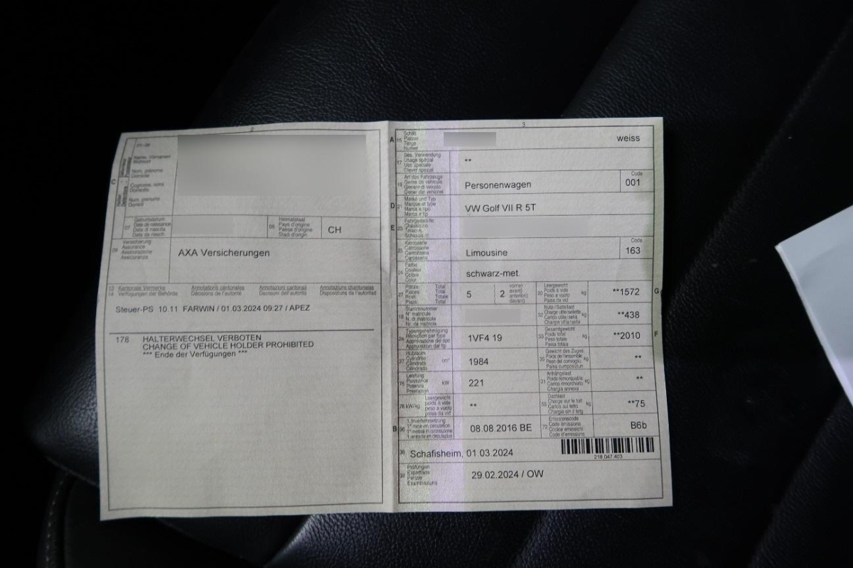 Fahrzeugausweis Vorhanden