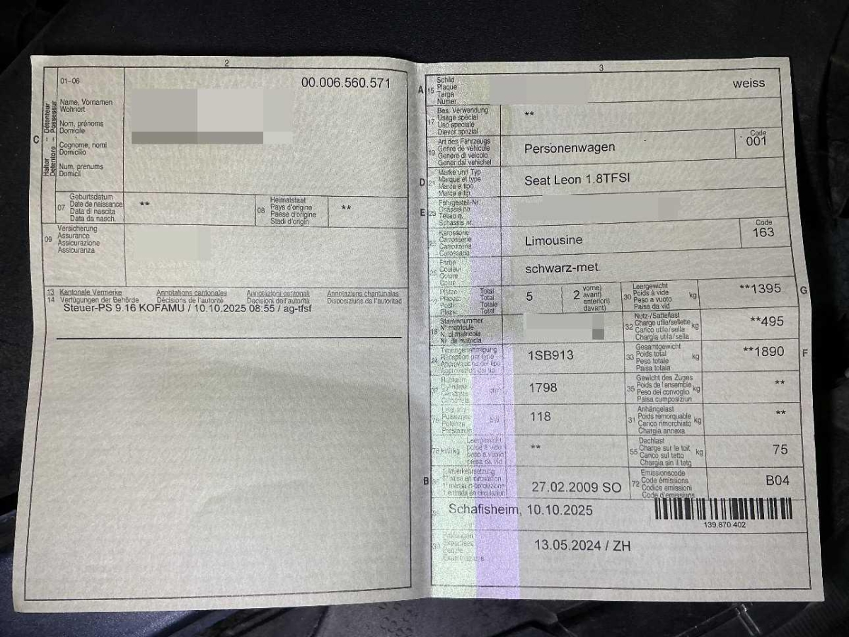 | Fahrzeugausweis | Vorhanden |